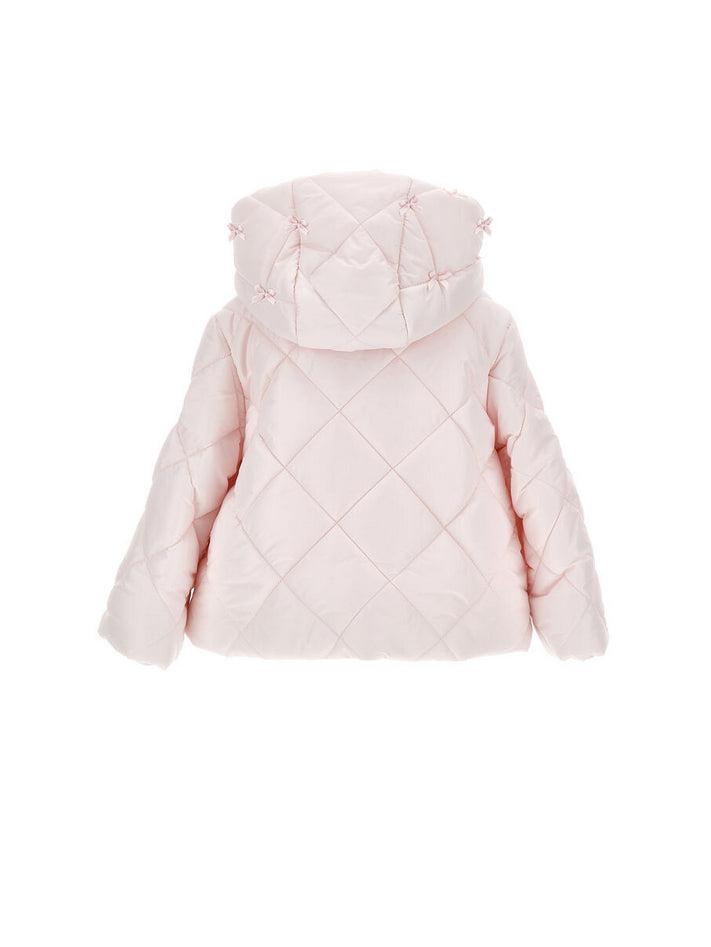 Un piumino delizioso per proteggere la tua bambina dal freddo con stile, i fiocchi aggiungono un tocco elegante perfetto per occasioni speciali, ideale per feste invernali o passeggiate domenicali, si abbina bene sia con abiti che con jeans. La proposta per le bimbe fino ai 3 anni unisce comfort e praticità a uno stile unico; maglioni soffici, calde pelliccette, capispalla avvolgenti e collant abbinati completano look pensati per la stagione invernale, le stampe iconiche, segno distintivo del nostro brand, aggiungono un tocco speciale a ogni outfit. Design trapuntato con dettagli fiocchi per un look sofisticato, cappuccio rimovibile per protezione extra contro il freddo, chiusura frontale nascosta per un aspetto pulito, tessuto morbido e leggero per il massimo comfort, adatto per passeggiate in città o eventi formali in inverno, facile da abbinare con accessori di stagione per un outfit chic. Made in: China. Tessuto principale: 90% poliestere, 10% poliammide; fodera principale: 100% poliestere; imbottitura (fibre): 100% poliestere. Codice prodotto 37F100 60220090 A25
