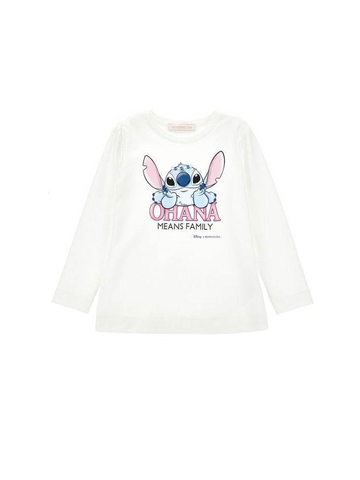 La maglietta perfetta per esserti sempre accanto grazie a Stitch e al suo messaggio "Ohana", comoda da indossare e ideale per ogni occasione casual grazie al suo design divertente, perfetta per un look unico durante le uscite in famiglia o per la scuola. La proposta core di Monnalisa per l'inverno è la collezione 2-12 anni, con abiti, maglioni, capispalla e total look facili da mixare, arricchiti da una vasta selezione di accessori, ogni capo è coordinato per tema con stampe iconiche e dettagli raffinati, perfetti per affrontare la stagione fredda con stile e comfort. T-shirt a maniche lunghe con stampa di Stitch, design "Ohana Means Family" per un messaggio speciale, tessuto in jersey morbido e confortevole, ideale per un look casual e trendy, perfetta da abbinare a jeans o pantaloni leggeri. Codice prodotto 19F618 60130001 A25