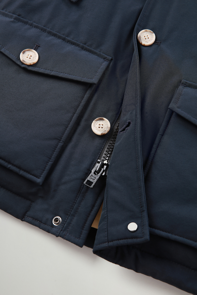 Prepara il tuo piccolo esploratore ad affrontare le fredde avventure invernali in pieno stile Woolrich. L'Arctic Parka da bambino con pelliccia removibile è realizzato nel caratteristico tessuto Ramar Cloth, rinforzato con finitura in Teflon per resistere a pioggia e vento. L'imbottitura in piuma d'anatra assicura calore e comfort eccezionali, mentre le tasche funzionali e l'inserto in pelliccia di procione staccabile aggiungono praticità e versatilità. Composizione: esterno 60% cotone, 40% poliammide; pelliccia procione (Nyctereutes procyonoides) origine Finlandia; interno 100% poliammide; imbottitura 70% piumino d'anatra grigia, 30% piuma. Lavaggio: in lavatrice max 30° ciclo delicato; lavare separatamente; non lavare a secco; non candeggiare; non asciugare in asciugatrice; non stirare. Codice prodotto CFWKOU0187MRUT0641MLB A25