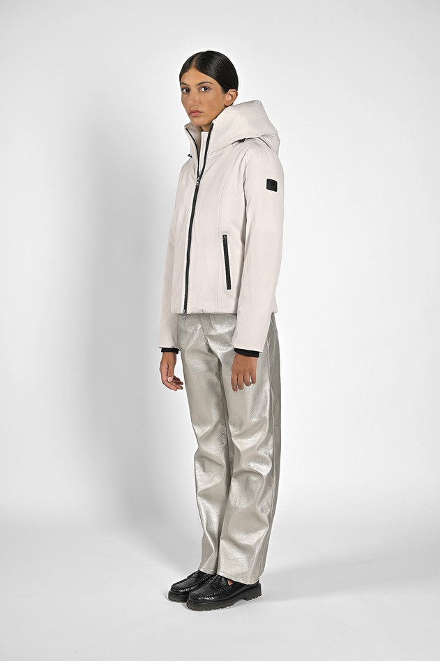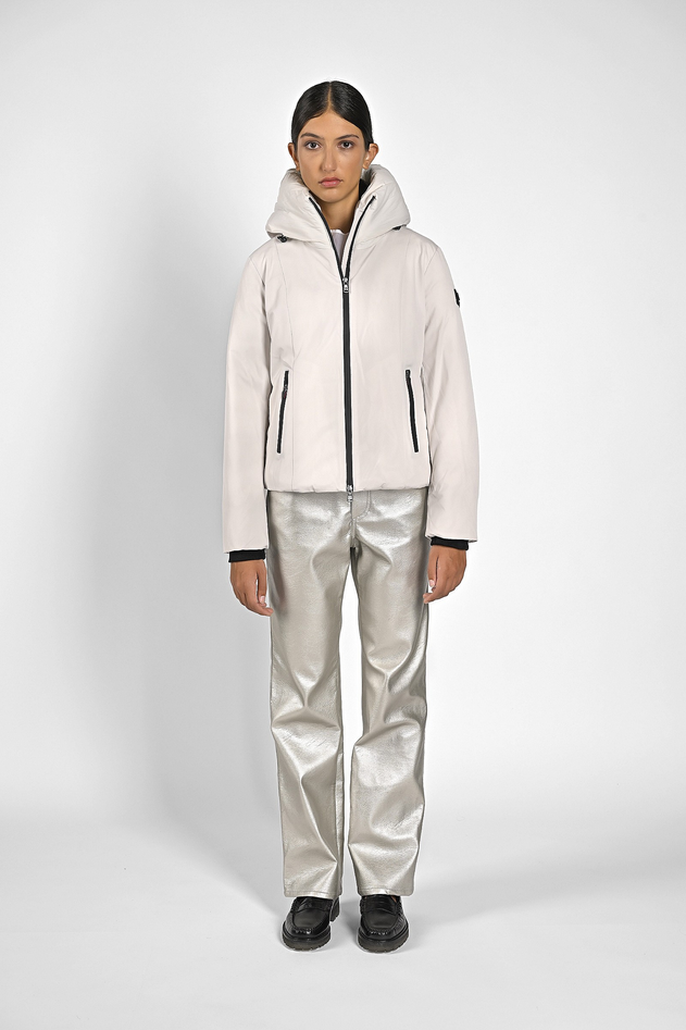 Questa giacca leggermente avvitata con cappuccio fisso è realizzata interamente in poliestere, con una piccola percentuale di elastane che rende più confortevoli i movimenti anche quando la si indossa sopra un maglione pesante. Il collo ad imbuto offre un'ulteriore protezione, così come i polsini interni in maglia. Non è solo un capo casual da indossare nei weekend o in montagna, ma risulta perfetto anche per le serate invernali abbinato a look più eleganti, come una gonna lunga in tessuto lucido o pantaloni fluidi. Tessuto: water resistant bio finish. Composizione tessuto: 90% polyester, 10% elastane. Imbottitura: 100% polyester. Per mantenere le caratteristiche originarie del vostro capo e garantirne una maggior durata nel tempo, vi raccomandiamo di seguire con attenzione le istruzioni di lavaggio indicate e di affidarvi a lavanderie specializzate. Codice prodotto CN.G224395WWHSAN A25