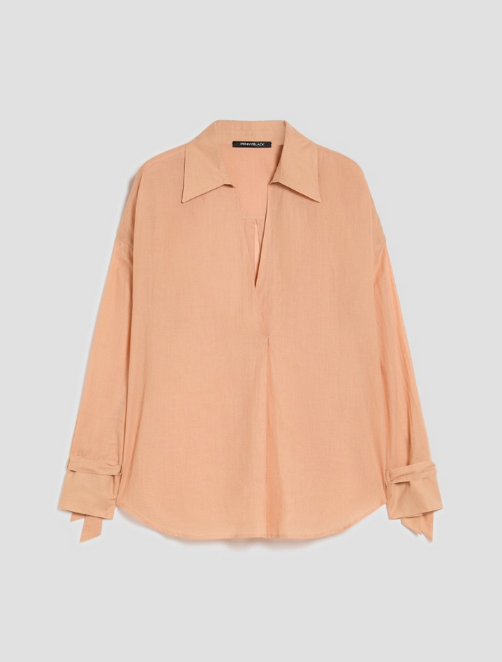 Da scegliere in freschissimi toni sorbetto, questa blusa in voile di cotone reinterpreta la classica camicia maschile in una delicata versione femminile, con linea diritta e fit ampio che dona leggerezza al look. Realizzata in 100% cotone, presenta colletto aperto sullo scollo a V, spalle scese e maniche lunghe, polsi con laccio da annodare e bottone, piega centrale sul davanti, carré e cannoncino sul retro, orlo arrotondato con spacchi laterali. Composizione e lavaggio: 100% cotone. In lavatrice max 30 gradi con ridotta azione meccanica, non candeggiare, non asciugare in tamburo, asciugare appeso in ombra, ferro tiepido max 120 gradi C, lavare a secco delicato con percloroetilene, lavare il capo allacciato, rovesciare il capo prima del lavaggio, contiene parti non tessili di origine animale. Codice prodotto PBBACCESO 2611111243200001 P26