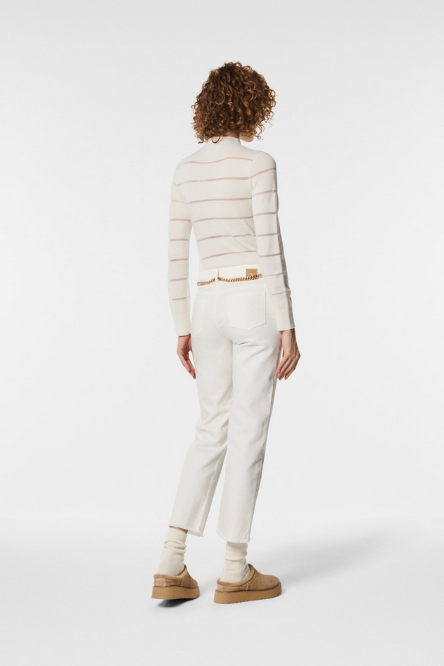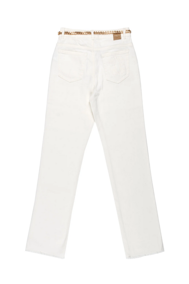 Pantalone a gamba dritta in gabardina tinto capo, dal design essenziale e raffinato, impreziosito da una cintura metallica oro con dettaglio NN che dona un tocco di luminosità, comodo e versatile, ideale per completare il proprio look. Composizione: 98% cotone, 2% elastan; si consiglia di lavare al rovescio a un massimo di 30° e di stirare sempre al rovescio non superando i 110°, togliere la cintura prima del lavaggio. Codice prodotto 40BB-SKY0004 A25