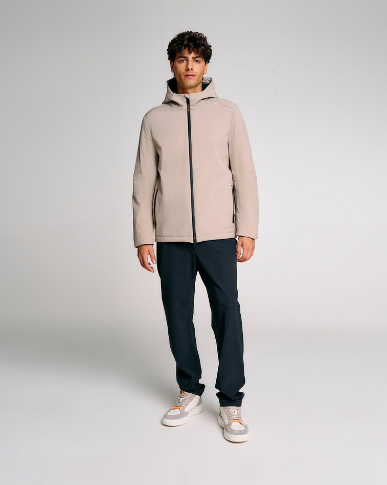 Giubbotto tecnico e funzionale pensato per affrontare la mezza stagione con leggerezza e praticità, dotato di cappuccio fisso e zip frontale waterproof che assicurano protezione, tasche laterali con zip invisibili per mantenere un design pulito, polsini interni in lycra per maggiore aderenza e una vestibilità comoda e dinamica, con interno in nylon 380T e dettaglio arancione che aggiungono personalità, completato da logo reflective sulla manica per visibilità e riconoscibilità. Caratteristiche principali: cappuccio fisso per protezione da vento e pioggia leggera, chiusura con zip waterproof, tasche laterali con zip invisibili, polsini interni in lycra, interno in nylon 380T leggero e resistente, pinnetta arancione fluo sul fianco, logo reflective sulla manica. Composizione: 95% poliestere, 5% spandex. Codice prodotto GBS53081UV1 A25