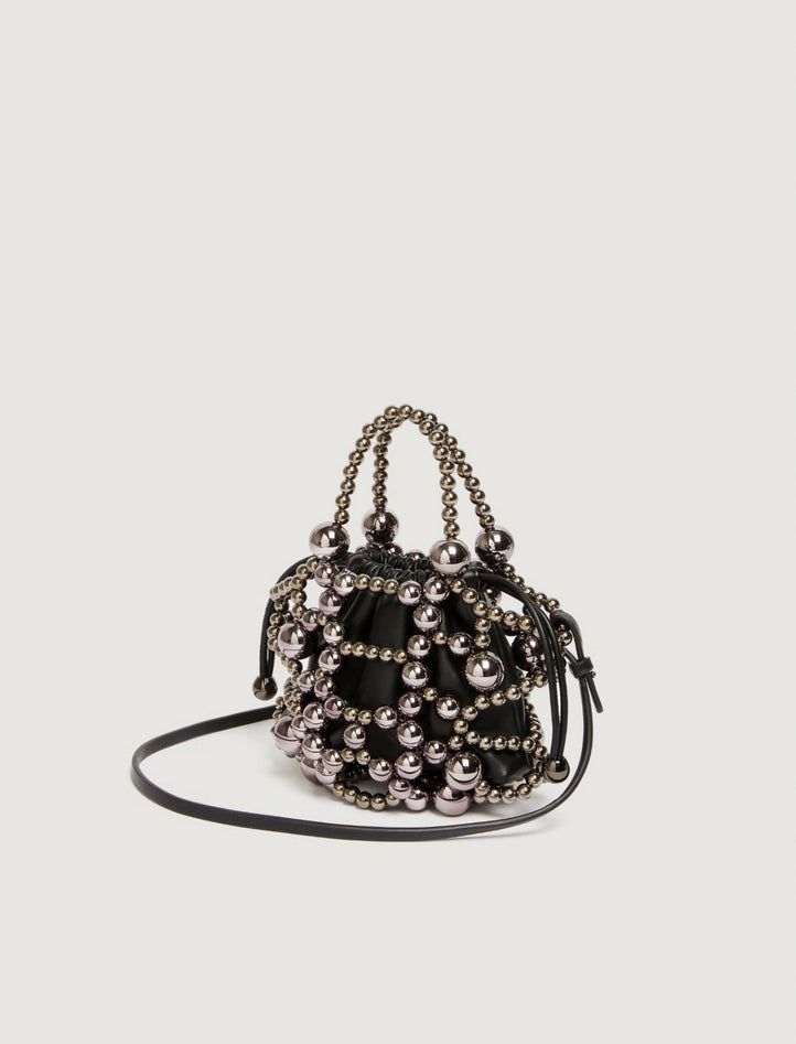 Compatto nei volumi e grande nello stile, il nuovo secchiello è in equilibrio tra accessorio e gioiello, con boule dalla finitura perlata che creano una gabbia esterna e una comoda pouch interna per contenere solo l'essenziale. Secchiello piccolo con maglie larghe e boule di due dimensioni, tracolla rimovibile in tessuto spalmato, pouch interna in tessuto spalmato con coulisse, interno foderato e personalizzato. Dimensioni: 22 x 3 x 16 cm. Composizione: borsa in acrilonitrile butadiene stirene (ABS) con interno staccabile in poliestere con spalmatura in poliuretano, fodera in 100% poliestere. Codice prodotto BOBBY 2523516196270003 A25