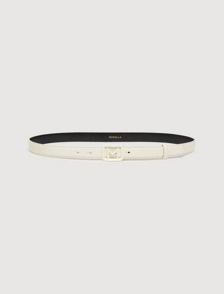 Nota scintillante da indossare ogni giorno, la cintura in pelle martellata aggiunge glamour ai pantaloni sartoriali o ai denim preferiti e scolpisce la silhouette se abbinata agli abiti svasati. Realizzata in pelle di bovino con retro in bovino, presenta fibbia logo in metallo verniciata in tinta, altezza 2,5 cm e confezione personalizzata Marella. Codice prodotto FLIPPER 2523506016200001 A25