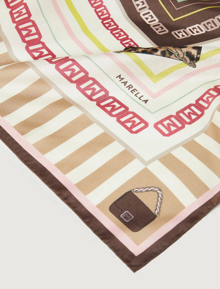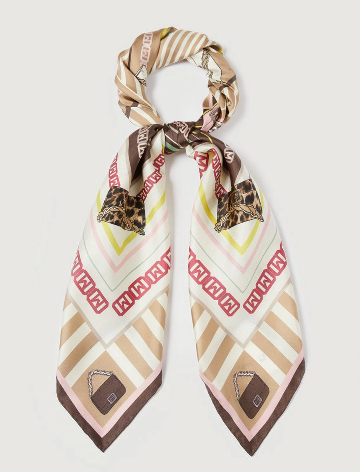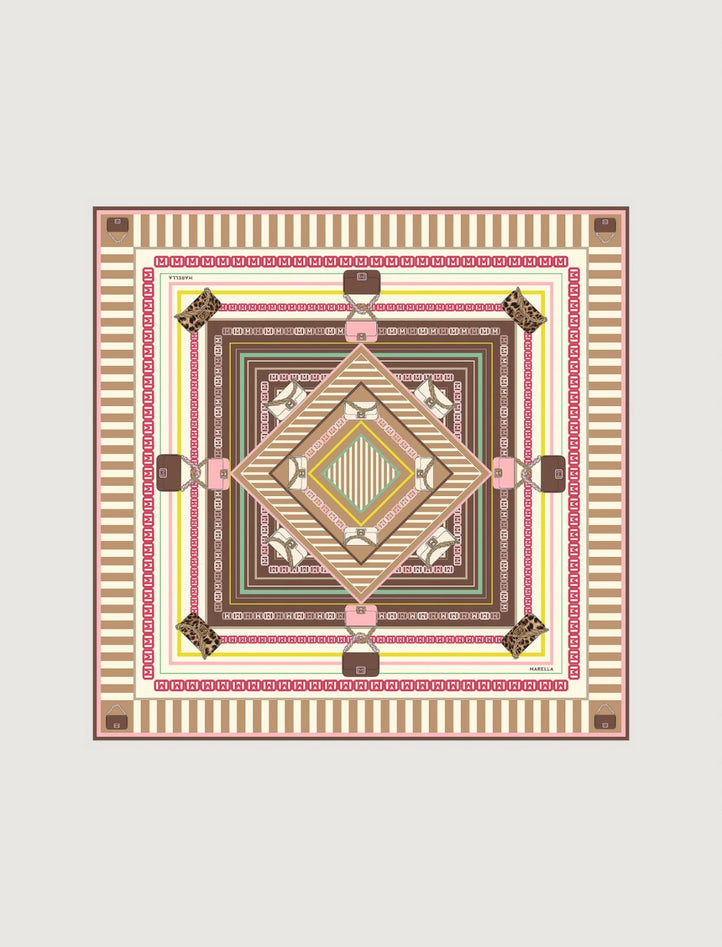 Al collo, tra i capelli o annodato sulla borsa, il foulard in seta è l'accessorio che dichiara la tua femminilità. Gioca con lo styling e decidi chi vuoi essere oggi. Foulard in twill di pura seta, stampa progetto Le Muse, misura 90 x 90 cm, consegnato con confezione personalizzata. Composizione: 100% seta. Lavaggio: non lavare in acqua, non candeggiare, non asciugare in tamburo, ferro tiepido max 120 °C, lavare a secco delicato con percloroetilene, non lavare ad umido professionale. Codice prodotto AGRO 2523546076270001 A25