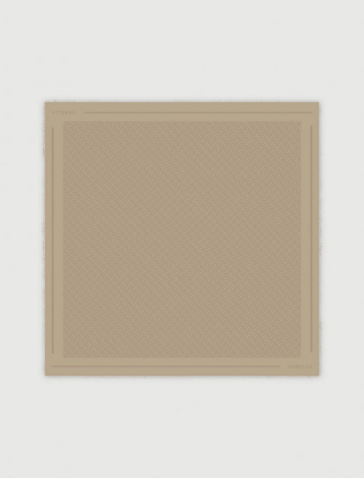 Scialle in viscosa e modal, motivo jacquard monogram, frange corte sui bordi, misura 120 x 120 cm. Composizione: 54% viscosa, 46% modal. Lavaggio: non lavare in acqua, non candeggiare, non asciugare in tamburo, ferro tiepido max 120 gradi c, lavare a secco delicato con percloroetilene, non lavare ad umido professionale. Codice prodotto OSSO 2523546086200005 A25