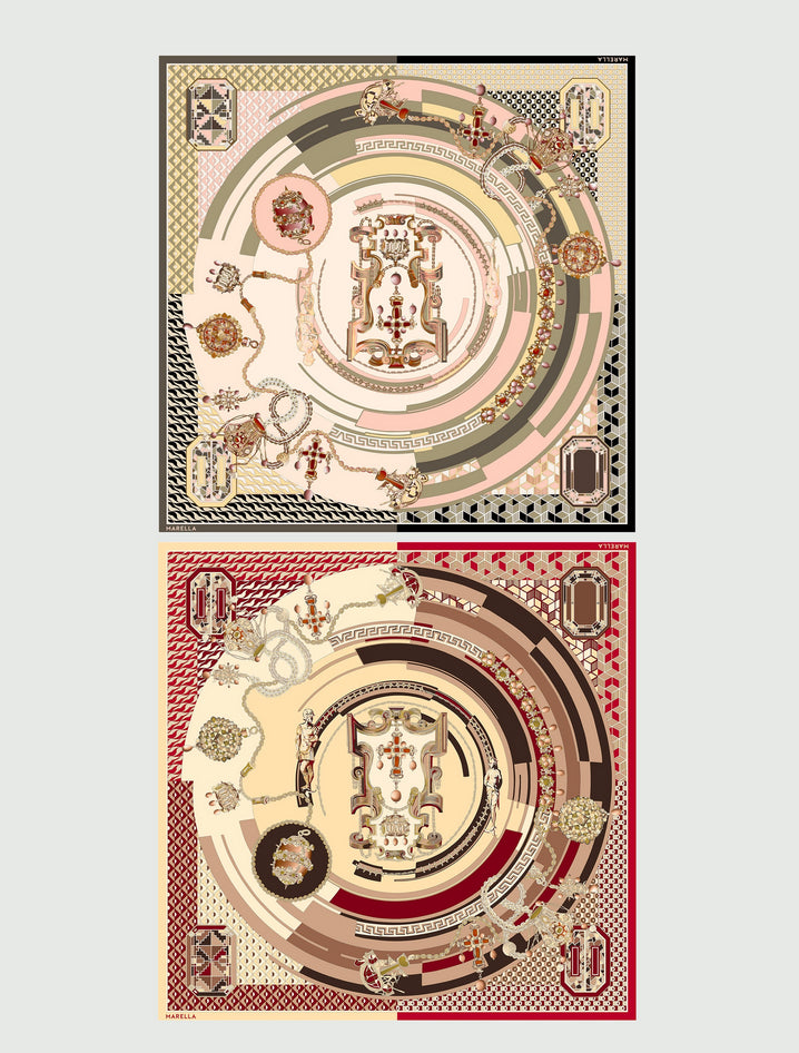 Al collo, al polso, tra i capelli o sul manico della borsa: il foulard è l'accessorio elegante e versatile che personalizza ogni tuo look. Foulard in raso di pura seta, stampa con motivi grafici su entrambi i lati, modello reversibile, misura 110 x 110 cm. Composizione: 100% seta. Lavaggio: lavare a mano in acqua fredda max 40°, non candeggiare, non asciugare in tamburo, asciugare appeso in ombra, ferro tiepido max 120°C, lavare a secco con percloroetilene, non lavare ad umido professionale.Codice prodotto SVEGLIA 2523546017270001 A25