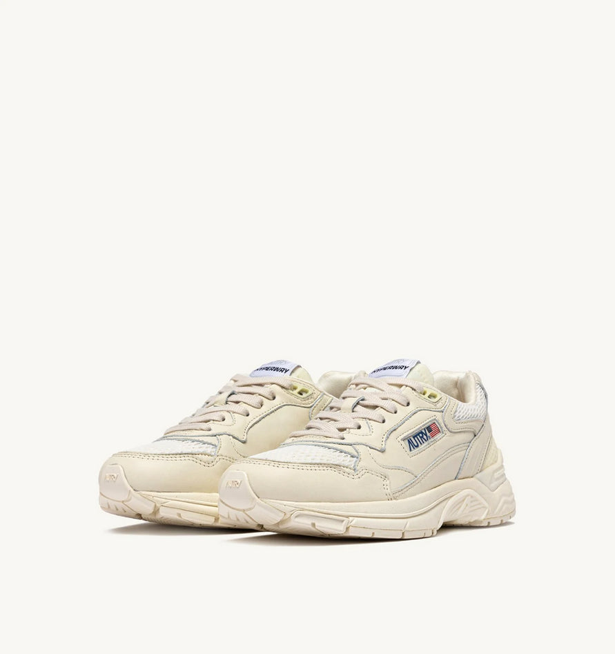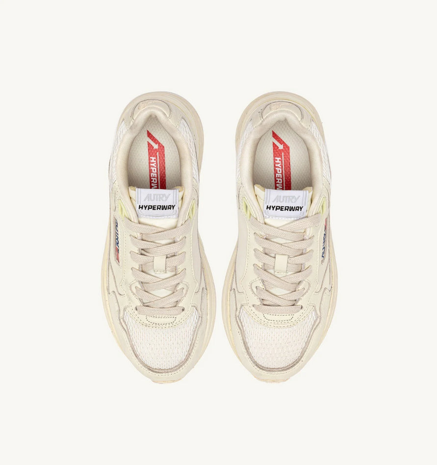 La sneaker Hyperway Autry fonde stile running e urban con un design contemporaneo e minimalista. La tomaia combina pelle di capra morbida e resistente con mesh leggero e traspirante, creando un effetto monocromatico elegante. La suola integra la tecnologia Action Cush per ammortizzazione ottimale e comfort, mentre lo stabilizer in TPR garantisce supporto e stabilità. Linguetta in nylon, Back counter in pelle a rilievo, label e logo laterale in jacquard completano il look. Caratteristiche: lacci piatti in cotone, colletto imbottito in mesh, fodera in spugna di cotone, soletta foderata in mesh rialzata 1,5 mm, suola in PI altezza 3,5 cm, dust bag personalizzata in nylon. Composizione: tomaia 80% pelle di capra, 20% tessuto (100% poliestere); fodera 50% spugna di cotone, 35% mesh, 10% nylon, 5% pelle; suola 40% Phylon, 20% TPU, 40% gomma. Codice prodotto HYLWGP01 A25