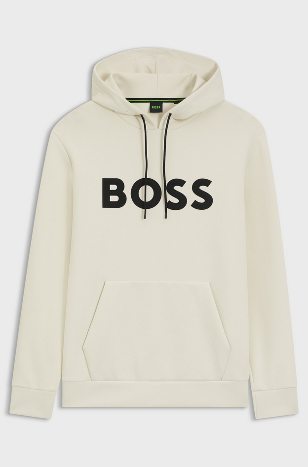 Questa felpa regular fit con cappuccio BOSS Donna assicura comfort e stile. Realizzata in tessuto misto elasticizzato con un'elevata percentuale di cotone, è rifinita con logo sagomato e cordoncini a contrasto. Presenta cappuccio, tasca a marsupio frontale, maniche lunghe, polsini a costine e lunghezza standard. Composizione 62% cotone, 33% poliestere, 5% elastan, fodera della tasca 100% poliestere. Lavare a 30 °C con ciclo facile da trattare, non candeggiare, non centrifugare, stirare a bassa temperatura, non lavare chimicamente. Codice prodotto Soody Zone 10272320 01131 A25