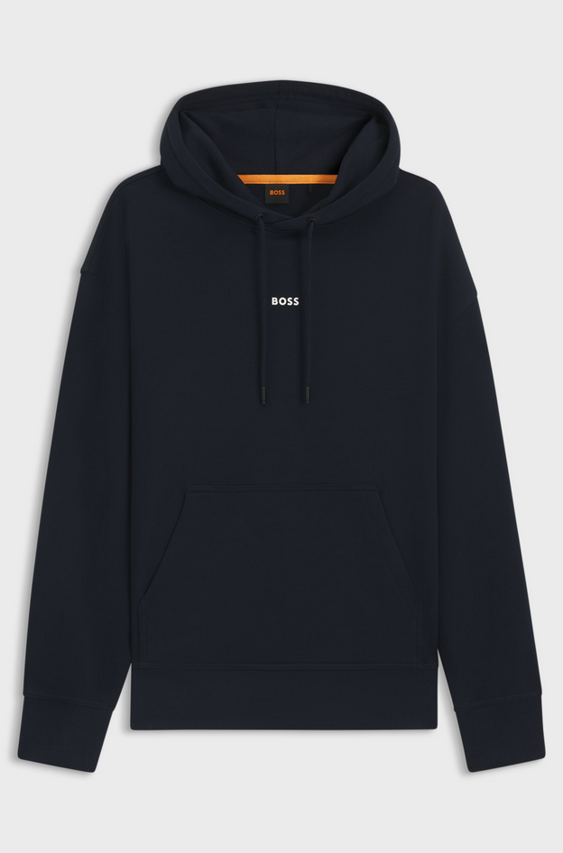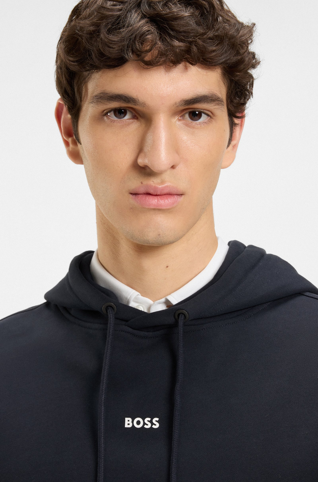 Felpa con cappuccio BOSS Uomo in pile di french terry, regular fit, con piccolo logo stampato a contrasto al centro del petto. Dotata di cappuccio, tasca a marsupio, manica lunga. Materiale: 100% cotone, polsini e girovita 97% cotone, 3% elastan. Lavaggio a 30 °C, non candeggiare, non centrifugare, stirare a bassa temperatura, non lavare chimicamente. Codice prodotto WeSmallhood 10244192 01404 A25