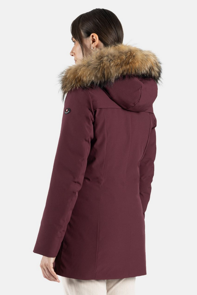 La giacca tecnica Zeropuntotech® è realizzata in tessuto Hidra-Nek® Two Way Stretch, top di gamma dei multilayer, e presenta un'imbottitura interna in piuma che garantisce comfort, calore e protezione. Il capo è dotato di apertura centrale con zip a doppio cursore, protetta da pattina con snaps metallici, ampie tasche laterali con zip protette da filetti, cappuccio staccabile, imbottito e rifinito con soffice bordo in pelliccia di raccoon rimovibile. Code: 9750. Name: HIDRA NEK STRETCH. Composition: 100% PL. Weight: 190 gr/m². Colonna d'acqua: 20.000 mm H2O. Traspirabilità: 15.000 gr/m²/24 ore. Tessuto tecnico dall'aspetto opaco, 100% poliestere stretch 2way con lamina poliuretanica dalle altissime performance di impermeabilità, traspirabilità e protezione dal vento (20.000 mm H2O - 15.000 gr/m²/24 ore). Fornisce eccellente protezione contro acquazzoni e venti forti, mentre la traspirabilità incorporata mantiene asciutto e garantisce comfort, e l'elasticità supplementare consente un'ampia libertà di movimento. Codice prodotto 25IMCAP05214N0198 A25