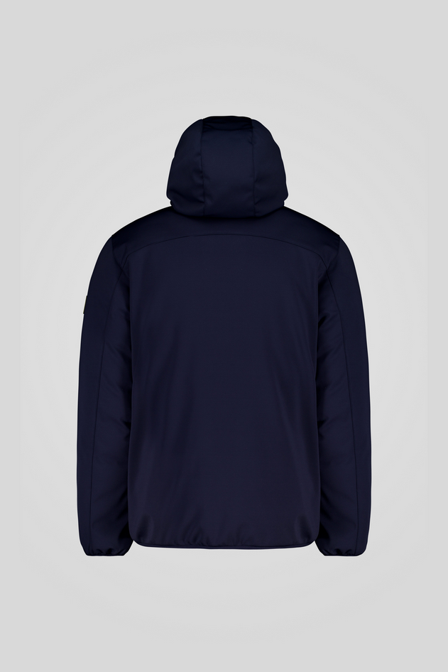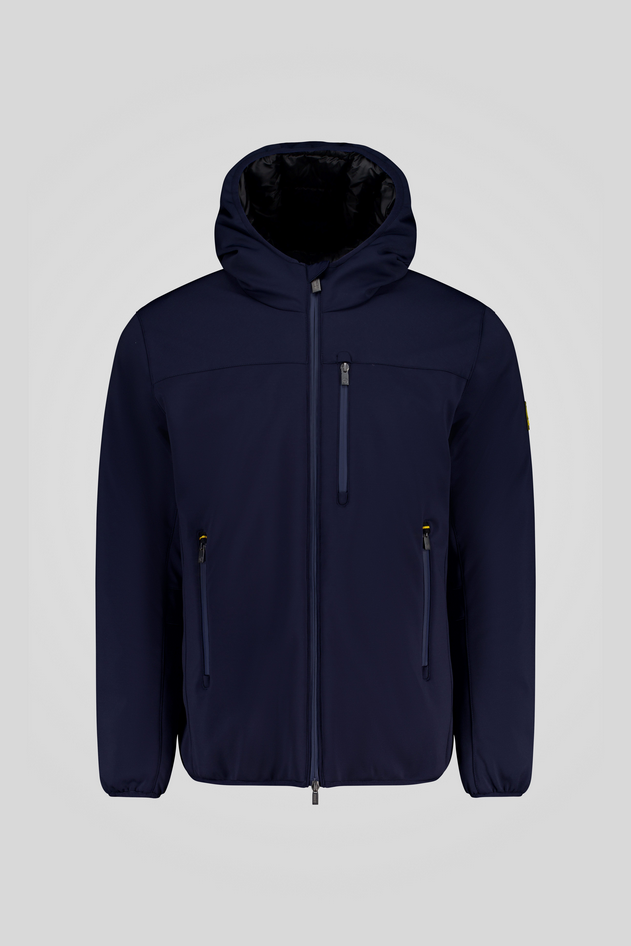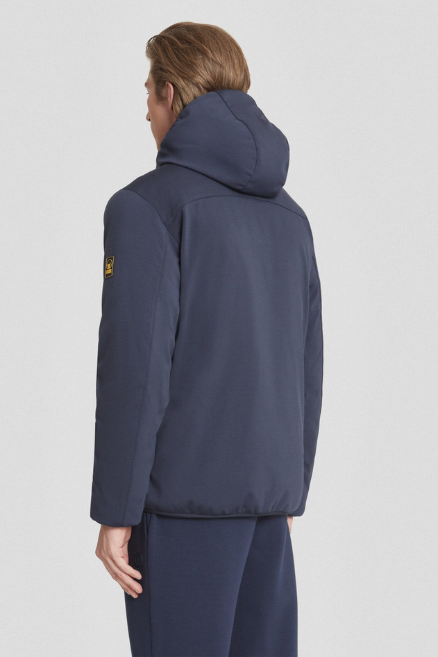 Giacca blu in softshell con cappuccio e imbottitura ecodown FELLEX® Thermar Pearl, pensata per unire protezione e comfort in un look essenziale. Il tessuto tecnico e i dettagli curati enfatizzano il design minimal e funzionale, caratterizzato da un fit confortevole, perfetto per affrontare la stagione invernale con stile. Vestibilità regular, cappuccio con bordo in lycra elasticizzato, elastico in tono su polsi, cappuccio e fondo (nero su variante bianca), zip waterproof, personalizzazioni con gros grain giallo/nero, logo giallo/nero su manica sinistra. Composizione: tessuto 95% poliestere 5% elastan, fodera 100% nylon, fodera 2 94% poliestere 6% spandex, imbottitura 100% poliestere. Codice prodotto 253CPMJ00125 P2643E3412XW A25