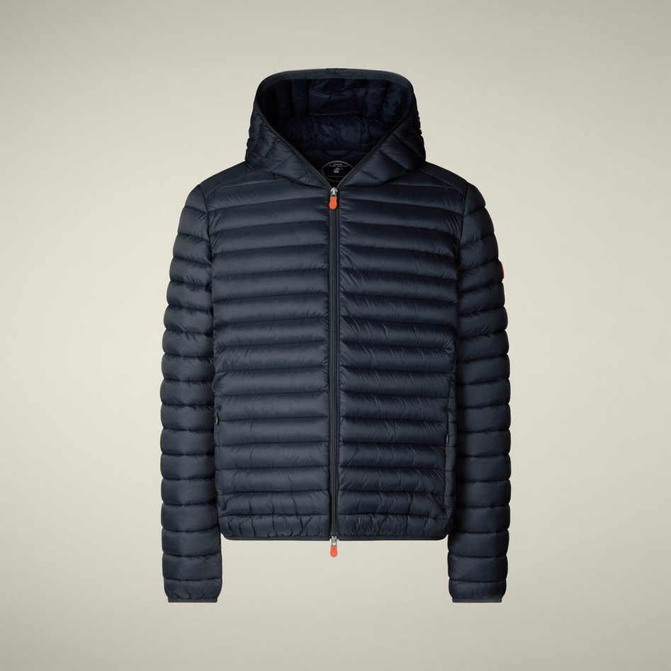 Bestseller della Collezione Icons, il piumino uomo modello Donald unisce il design in nylon leggero con l'imbottitura animal free in Plumtech®. Dotato di cappuccio, chiusura a doppio cursore e tasche laterali, presenta polsi e fondo bordati in Lycra per un fit confortevole. Il capo si distingue per i tirazip personalizzati e il logo rotondo arancione sulla manica sinistra, rappresentando l'alternativa Save The Duck al classico piumino 100 grammi. Realizzato in 100% nylon ad altissima densità (20dX20d), è estremamente leggero e morbido, con un aspetto fashion e lucente. Sottile ma resistente, garantisce protezione da acqua e aria, assorbe l'umidità e asciuga rapidamente. Lavaggio: lavare a macchina fino a 30°, centrifuga delicata, non candeggiare, non usare asciugatrice, non stirare, non lavare a secco, evitare centrifughe intense per minimizzare pieghe o sfregamenti che possano danneggiare il tessuto. Codice prodotto D30650M-GIGA2190010 A25