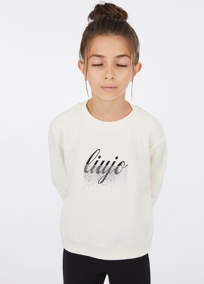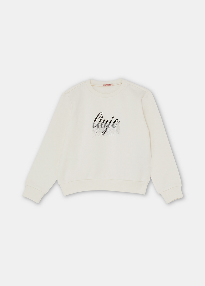Felpa in misto cotone con stampa logo impreziosita da strass, caratterizzata da un taglio girocollo, maniche lunghe e bordi a costine. Realizzata con tessuto principale composto da 80% cotone e 20% poliestere, mentre le parti in tessuto a maglia sono in 95% cotone e 5% elastan. Per la cura del capo: lavare delicatamente a massimo 30°C, non utilizzare cloro, non lavare a secco, lavare a rovescio e separatamente. Non usare asciugatrice. Non stirare oppure stirare solo fino a 110°C, senza toccare le decorazioni e interponendo un panno. Codice prodotto GF5001 F032671322 A25