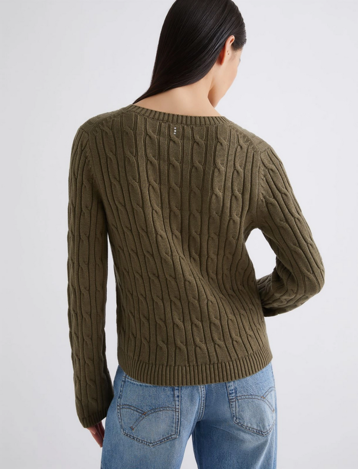 Aderente per una silhouette scolpita, la maglia a trecce unisce mood rilassato e tocco cool grazie alla lavorazione tridimensionale. Realizzata in filato di lana e cotone, presenta fit aderente, scollo a giro, lavorazione con trecce 3D, polsi e fondo capo a coste. Composizione: 50% lana, 50% cotone (decorazioni escluse). Lavaggio: a mano in acqua fredda max 40°, non candeggiare, non asciugare in tamburo, asciugare in piano in ombra, ferro tiepido max 120°C, lavaggio a secco delicato con percloroetilene, non lavare ad umido professionale, usare panno tra capo e ferro, detersivo neutro, rovesciare il capo prima del lavaggio e stirare a rovescio, non stirare le decorazioni. Codice prodotto CALIBRI 2523366304270007 A25
