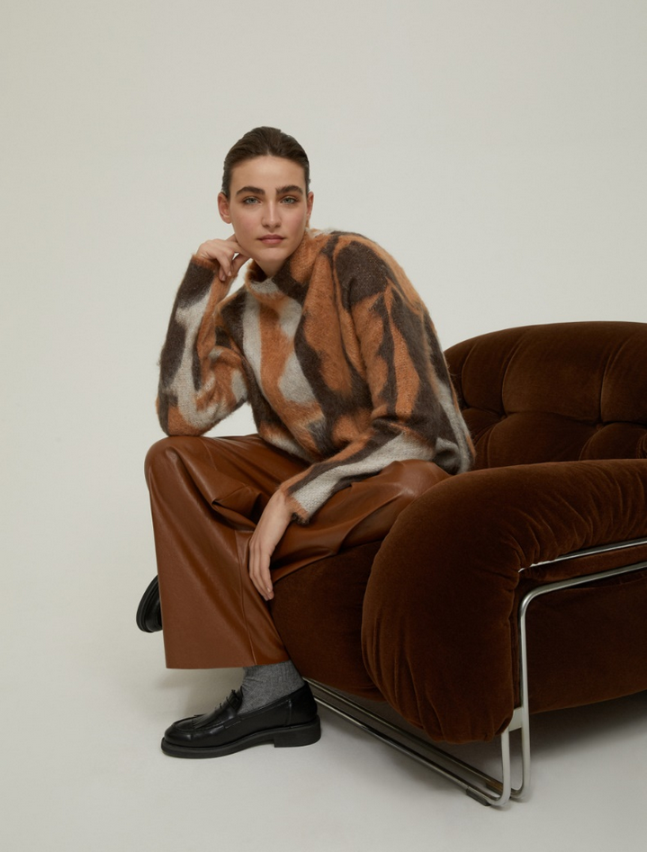 Extra soffice, ad alto tasso di stile, la maglia oversize in mohair blend trasforma in sapienti lavorazioni jacquard i pattern creati per Pennyblack dall'artista britannica Eloise Renouf, filato in mohair blend con finitura garzata, lavorazione jacquard, fit oversize e linee diritte, collo a cratere, spalle scese e maniche lunghe. Composizione e lavaggio: 35% acrilica, 35% poliammide, 30% mohair. Lavare a mano acqua fredda max 40°, non candeggiare, non asciugare in tamburo, asciugare in piano in ombra, ferro tiepido max 120 gradi C, lavare a secco delicato con percloroetilene, non lavare ad umido professionale. Codice prodotto ZAFFIRO 2521366593200001 A25