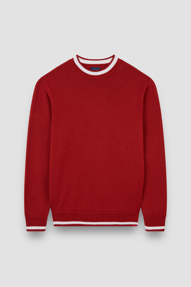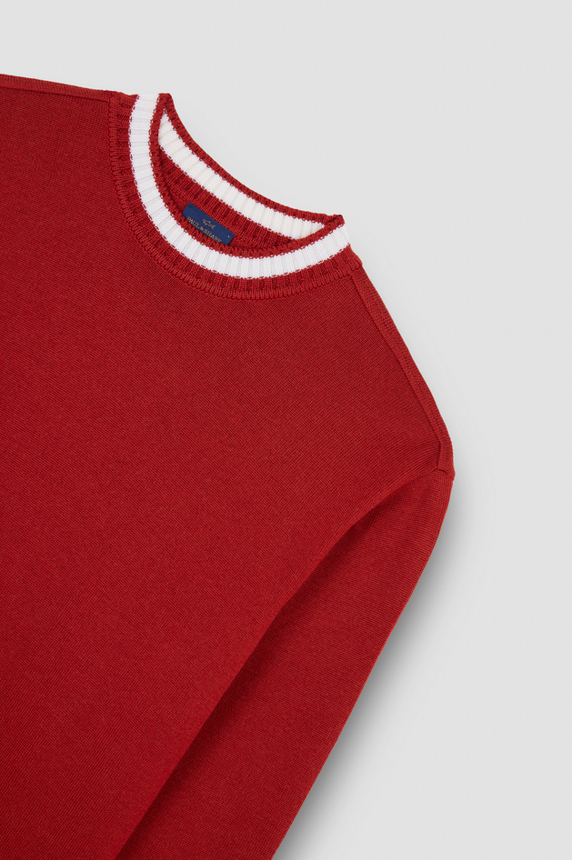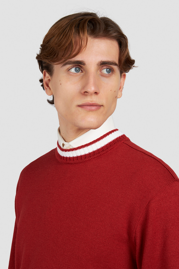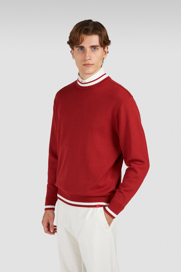 Maglia girocollo in lana Soft Cool Touch finezza 8, realizzata in filato pressato a freddo compatto ma flessibile, idrorepellente e resistente al pilling. Lavorazione rasata, collo, polsi e balza a costine con riga a contrasto, maniche lunghe, vestibilità regular. Composizione: 100% lana vergine. Istruzioni di lavaggio: lavare in acqua max 30° ciclo delicato, non candeggiare, non asciugare in asciugatrice, stirare con ferro tiepido max 110°, lavaggio a secco consentito. Codice prodotto 15311090636 A25