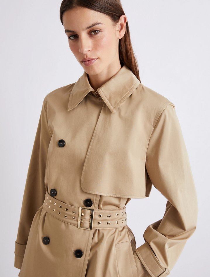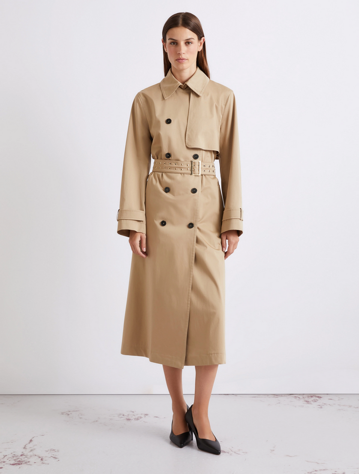Intramontabile e fedele a se stesso, il trench è protagonista indiscusso della moda femminile contemporanea, da scegliere con linea femminile e chiusura doppiopetto per un'ispirazione timeless, tra spionaggio e seduzione. Realizzato in raso di cotone stretch antigoccia, presenta fit regolare, collo a camicia, chiusura doppiopetto con bottoni a vista e cintura con vele metalliche e fibbia dorata, bavolette sulla spalla sinistra e sul retro. Composizione: 97% cotone, 3% elastan. Lavaggio: non lavare in acqua, non candeggiare, non asciugare in tamburo, ferro tiepido max 120 gradi C, lavare a secco delicato con percloroetilene, non lavare ad umido professionale, lavare la cintura in un sacco di rete, proteggere la fibbia prima del lavaggio. Codice prodotto MLLACAICI 2613021051200001 P26