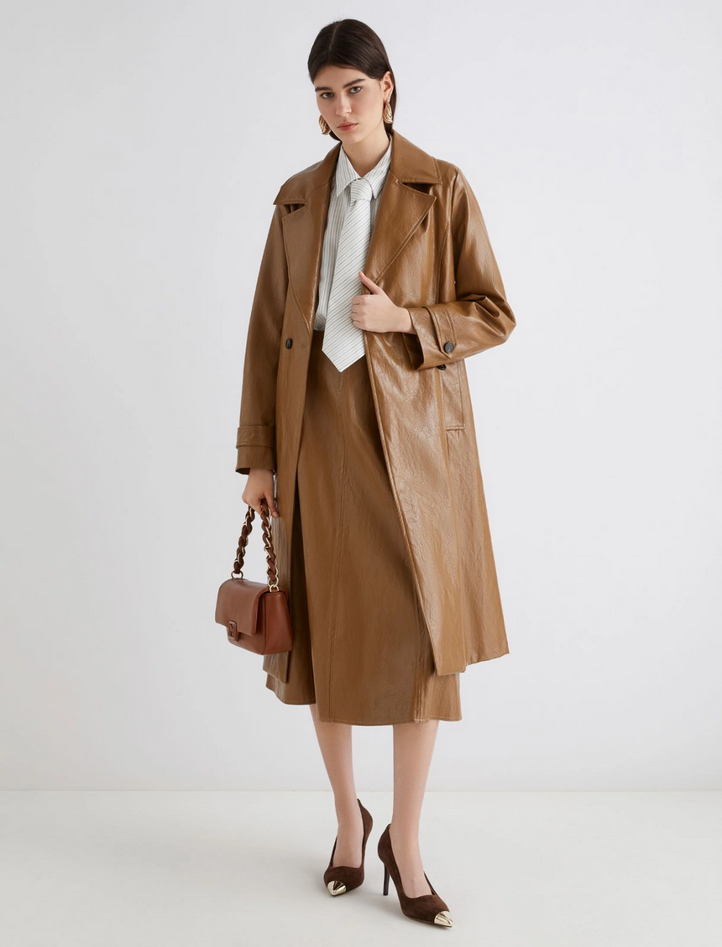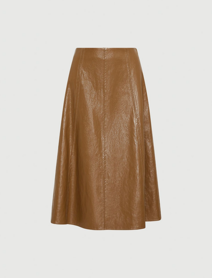 Linea svasata e pannelli con impunture a vista: la nuova gonna unisce linee femminili classiche al tocco urbano della saglia spalmata. Da provare con il trench coordinato per un mix cromatico e materico sorprendente. Realizzata in saglia spalmata, ha fit svasato con punto vita aderente, costruzione a spicchi con impunture a vista e apertura laterale con zip. Composizione: tessuto 74% viscosa, 15% poliestere, 7% cotone, 4% fibra metallica, strato ricoprente in poliuretano, fodera 64% acetato, 36% poliestere. Lavaggio: lavare a mano in acqua fredda max 40°, non candeggiare, non asciugare in tamburo, asciugare appeso in ombra, non stirare, lavare a secco delicato con percloroetilene, non lavare ad umido professionale. Codice prodotto FALANGE 2523106071270002 A25