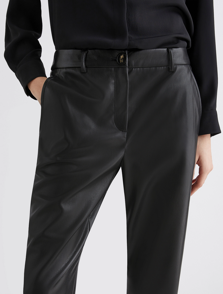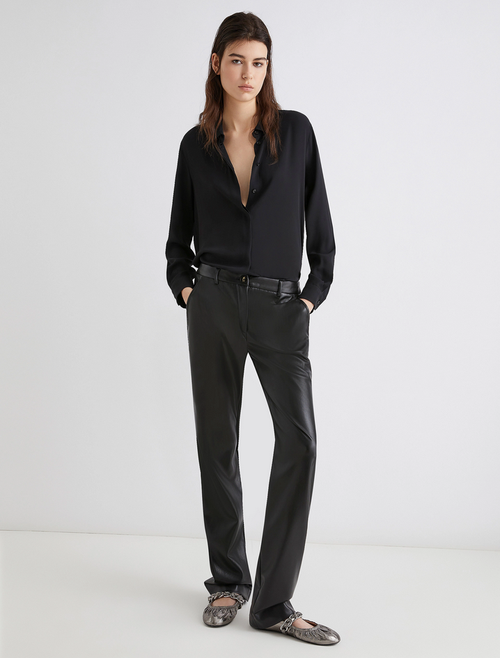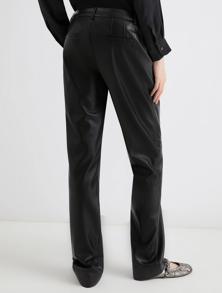 Ormai un must del guardaroba quotidiano, il pantalone in jersey spalmato unisce il carattere urban dell'effetto pelle a un fit aderente e ultra femminile. Versatile e contemporaneo, si abbina facilmente a maglie morbide e ballerine per un daywear rilassato ma ricercato. Realizzato in jersey spalmato con apertura frontale a bottone e zip, presenta tasche laterali alla francese e posteriori a filetto. Composizione: tessuto a maglia 100% poliestere; strato ricoprente in poliuretano. Lavaggio: in lavatrice max 30°C con ridotta azione meccanica; non candeggiare; non asciugare in tamburo; asciugare appeso in ombra; non stirare; lavare a secco delicato con percloroetilene. Codice prodotto TEODORA 2523786011270001 A25