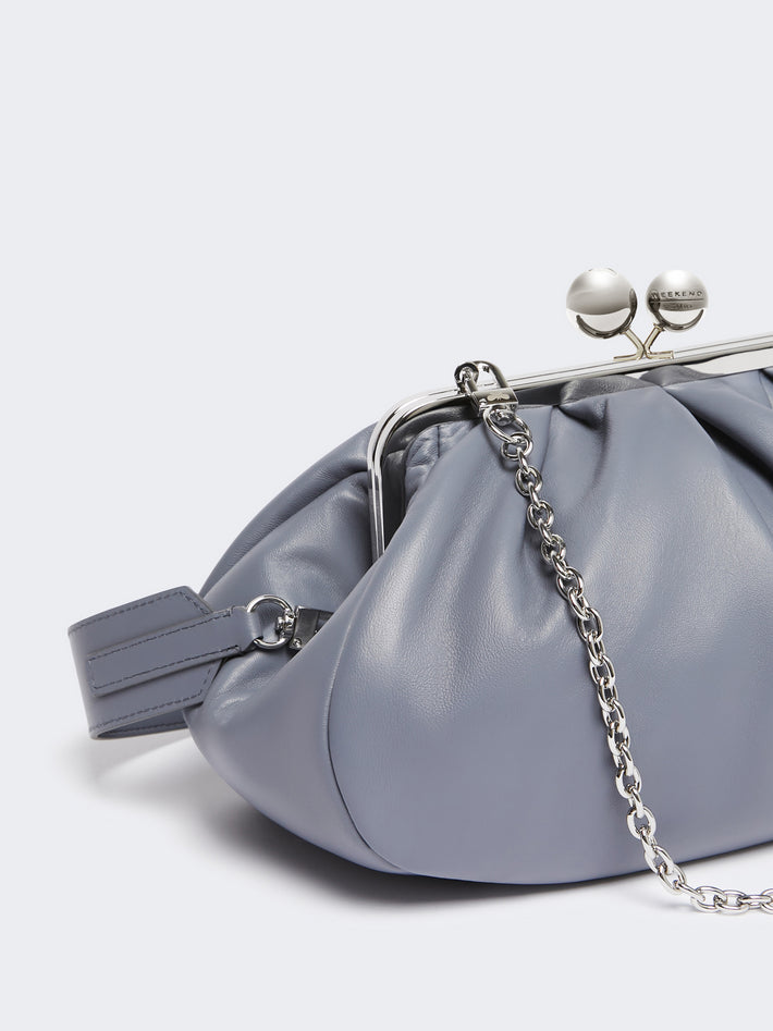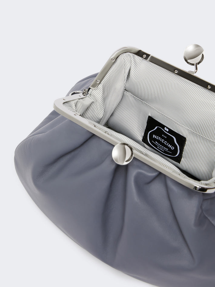 Pasticcino Bag Medium in morbido montone nappato leggero dalla forma destrutturata, ideale da portare a mano o crossbody grazie alla tracolla lunga a catena con spallaccio in pelle e alla tracolla corta in pelle, entrambe rimovibili con ganci a scomparsa. L'interno è foderato in tessuto a righe con tasca portaoggetti e label personalizzata. Completa il design la chiusura metallica con sfere personalizzate Weekend Max Mara. Dimensioni: 31 x 13 x 21 cm. Composizione: borsa in montone, fodera 100% poliestere. Codice prodotto CUBICO 2525516194600077 A25