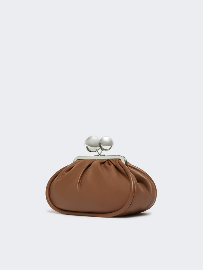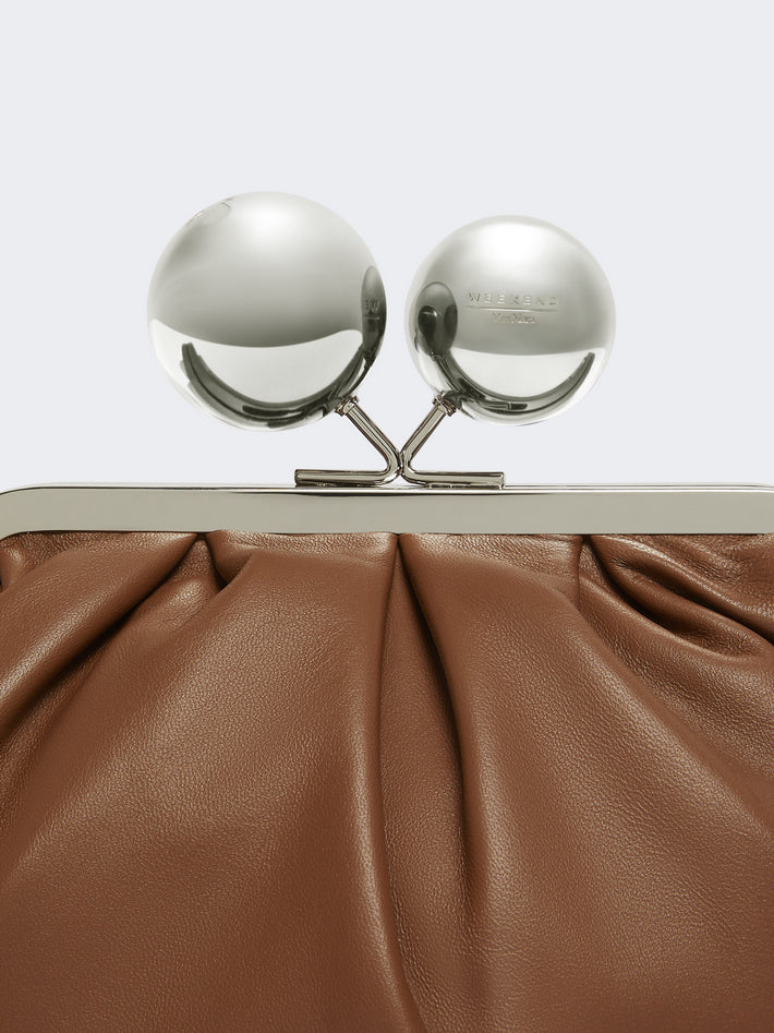 Pasticcino Bag Medium, la super clutch per dare un tocco personale e affascinante al tuo stile quotidiano. Borsa in morbido montone nappato leggero, fodera in tessuto a righe e maxi piping sui profili, tasca interna a toppa con label personalizzata, tracolla corta in pelle e lunga a catena con spallaccio in pelle, doppio attacco per le tracolle e charm in testa o sui fianchi, chiusura metallica con maxi sfere personalizzate Weekend Max Mara. Dimensioni: 31 x 13 x 21 cm. Composizione: borsa in montone, fodera in 100% poliestere. Codice prodotto MILVANEW 2525516025600009 A25