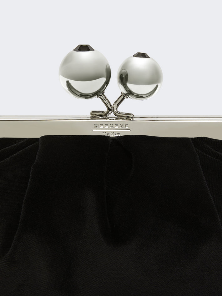 Pasticcino Bag Small, la super clutch per dare un tocco personale e affascinante al tuo stile quotidiano. Realizzata in velluto rasato di puro cotone, con fodera stampata fantasia e label personalizzata. Completa di tracolla lunga rimovibile a catena con spallaccio in pelle e chiusura metallica con sfere rifinite da strass incastonato. Dimensioni: 19 x 10 x 15 cm. Composizione: borsa 100% cotone, fodera 100% poliestere. Istruzioni di cura: non lavare in acqua, non candeggiare, non asciugare in tamburo, non stirare, non lavare a secco, non lavare ad umido professionale. Codice prodotto VALANCE 2525516115600005 A25