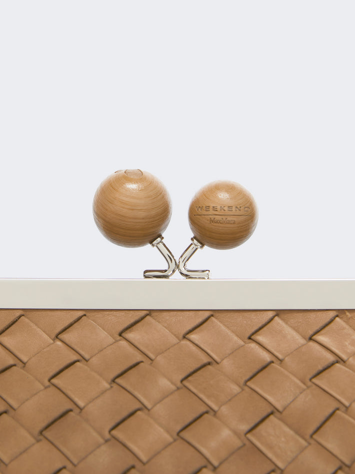 Pasticcino Bag Medium, la super clutch per dare un tocco personale e affascinante al tuo stile quotidiano. Realizzata in pelle intrecciata dal design strutturato, con fodera in tessuto a righe e tasca interna a toppa con label personalizzata. Dotata di tracolla corta in pelle intrecciata e lunga a catena con spallaccio, entrambe rimovibili grazie al doppio attacco laterale e in testa. Chiusura metallica con sfere personalizzate effetto legno. Dimensioni: 31 x 13 x 21 cm. Composizione: borsa in pelle bovina, fodera 100% poliestere. Codice prodotto PANCIA 2525516154650001 A25