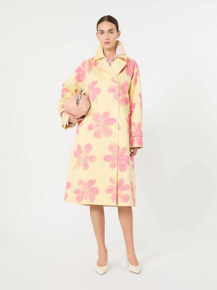 **A Weekend with an Artist** celebra la creatività: Tschabalala Self reinterpreta l'iconico trench coat di Weekend Max Mara, trasformandolo in un'opera d'arte da indossare. Realizzato in gabardina di cotone antigoccia, presenta linea svasata con spacco centrale sul retro, colletto a camicia doppio uso e maniche lunghe raglan con alamari ai polsi, chiusura con bottoni e cintura abbinata con fibbia in pelle, tasche a filettone sui fianchi e mantellina sulla schiena, è semifoderato e rifinito con logo Weekend nella fodera interna dello sprone. Composizione e lavaggio: tessuto 100% cotone; fodera 100% cotone; fodera maniche 65% acetato, 31% poliammide, 4% elastan. Lavare a mano in acqua fredda max 40°, non candeggiare, non asciugare in tamburo, asciugare appeso in ombra, ferro tiepido max 120 gradi C, lavare a secco delicato con percloroetilene, non lavare ad umido professionale, non stirare le applicazioni, staccare la fibbia prima del lavaggio, contiene parti non tessili di origine animale. Codice prodotto WKSRADIOSO 2615021036600001 P26