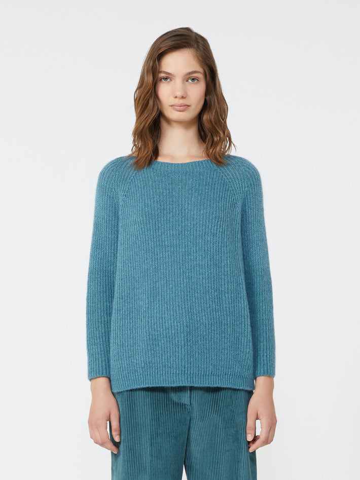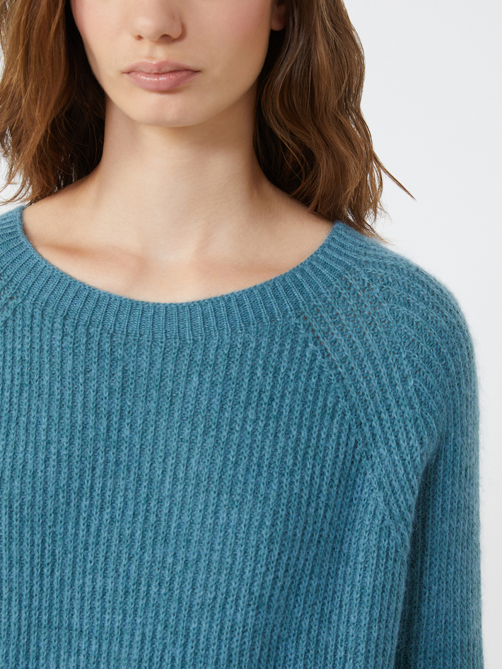 Maglia comfort fit in filato mohair con lavorazione a punto pannocchia, dalla vestibilità e lunghezza regolari. Girocollo ampio e maniche lunghe raglan. Composizione: 34% poliammide, 30% acrilica, 28% mohair, 8% poliestere. Cura del capo: lavare a mano in acqua fredda max 40°; non candeggiare; non asciugare in tamburo; asciugare in piano all'ombra; stirare a ferro tiepido max 120 °C con panno di protezione; lavare a secco delicato con percloroetilene; non lavare ad umido professionale; utilizzare detersivo neutro. Codice prodotto XENO 2525366102600004 A25