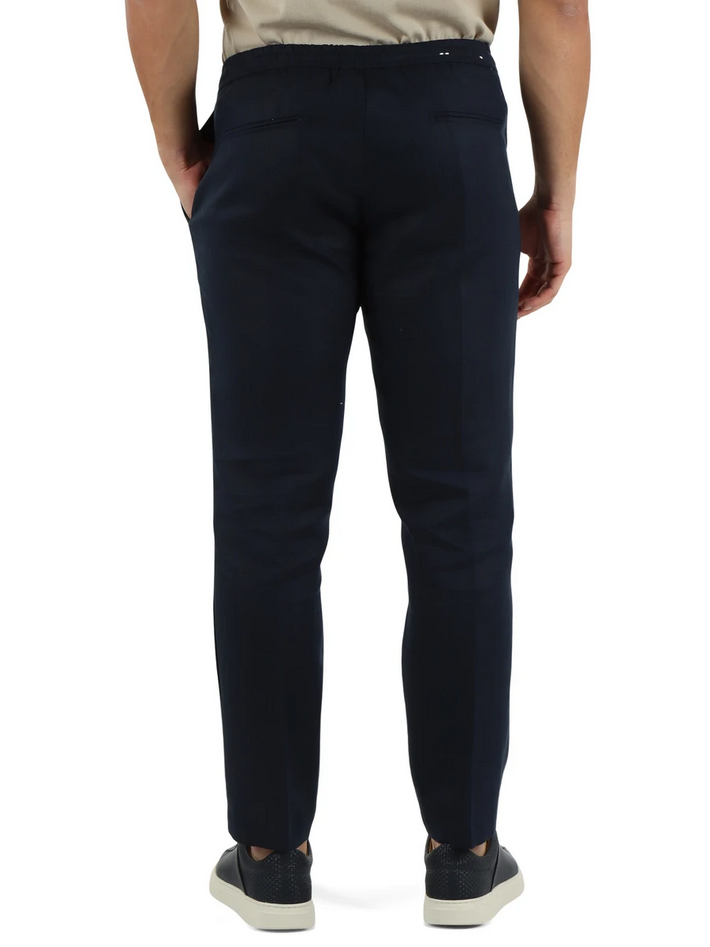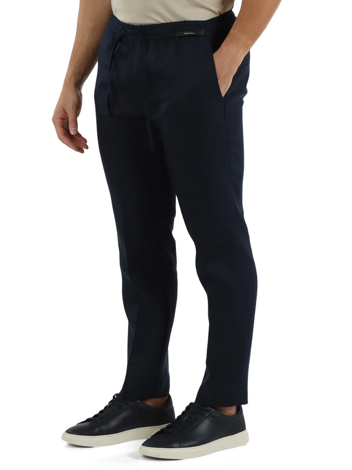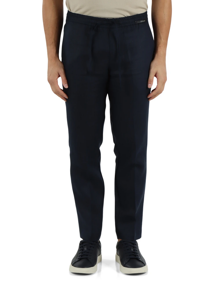 I pantaloni in puro lino coniugano la freschezza naturale della fibra alla praticità della vita elasticizzata con coulisse, garantendo un fit confortevole e traspirante. Il design è rifinito da una chiusura con zip a scomparsa, tasche frontali e tasche a filo sul retro, offrendo una silhouette versatile con fondo da 19 cm. L'indosso regala un'estetica rilassata ma curata, ideale per le occasioni estive sia casual che formali. Per la manutenzione, si consiglia un lavaggio delicato per preservare la struttura e la lucentezza del 100% lino. Codice prodotto MCADA3259S26BLU P26