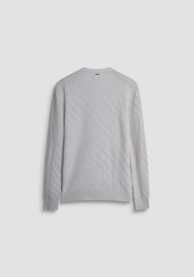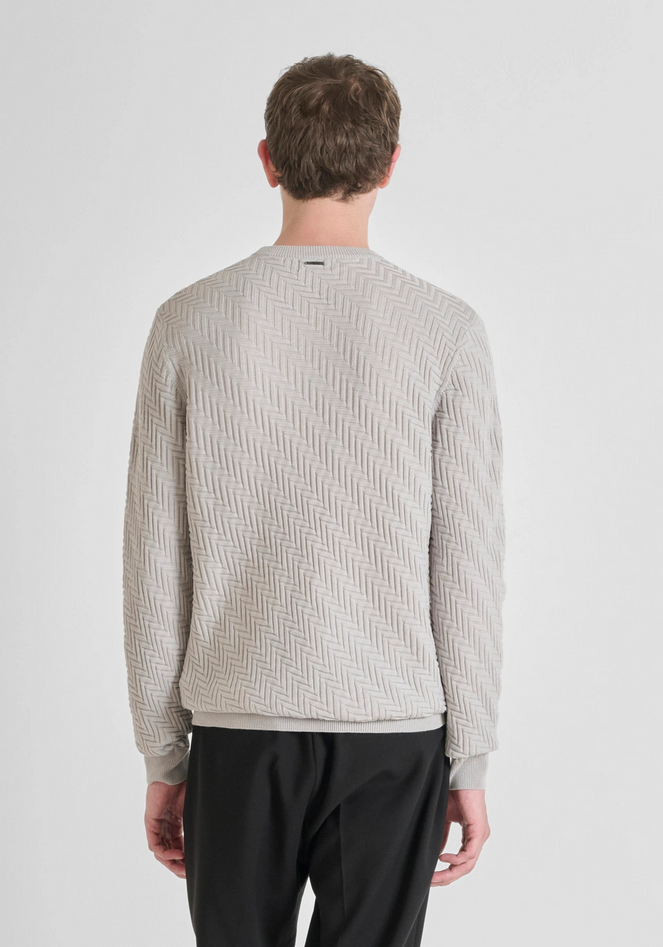 Maglione girocollo regular fit realizzato in morbida lana con sofisticato motivo jacquard tridimensionale a spina di pesce, che dona un elegante effetto texture. Girocollo, polsini e orlo rifiniti a costine. Un capo versatile che si adatta a diverse occasioni, dal casual quotidiano agli impegni del weekend, rappresentando una scelta perfetta per un guardaroba contemporaneo e senza tempo. Composizione: 40% poliestere, 29% acrilico, 25% poliammide, 6% lana merino. Lavaggio in lavatrice a 30°, non candeggiare, asciugare in piano, stirare max a 110°, non lavare a secco. Codice prodotto MMSW01533-YA5000881013 A25