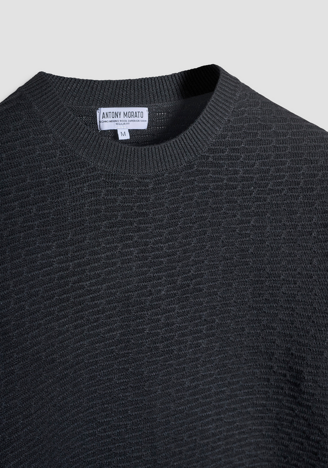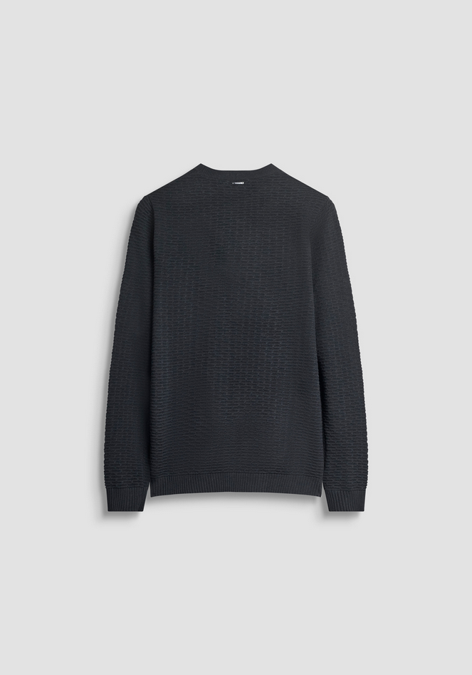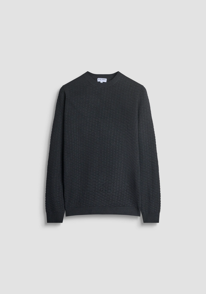 Maglia girocollo dalla vestibilità regular, realizzata in misto lana Merino. La sofisticata lavorazione a coste dona un elegante effetto texture su tutta la superficie, conferendo profondità e movimento al capo. La lana Merino garantisce eccellenti proprietà termoregolanti, mantenendo il calore nei giorni più freddi e offrendo al tempo stesso traspirabilità. Finiture a costine su collo, polsi e orlo. Un modello che unisce stile casual e raffinatezza formale, perfetto da indossare da solo o sotto giacca per un look più strutturato. Un capo senza tempo, ideale per ogni stagione. Composizione: 40% Poliestere, 29% Acrilico, 25% Poliammide, 6% Lana Merino. Lavaggio in lavatrice a 30°, non candeggiare, asciugare in piano, stirare max a 110°, non lavare a secco. Codice prodotto MMSW01551-YA5000889000 A25