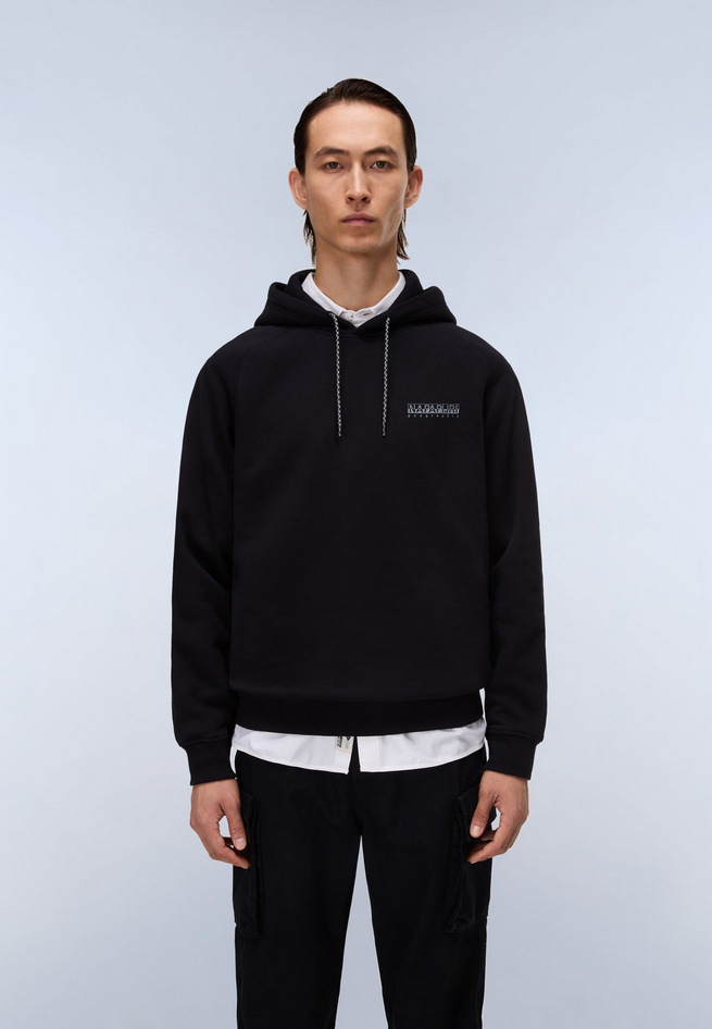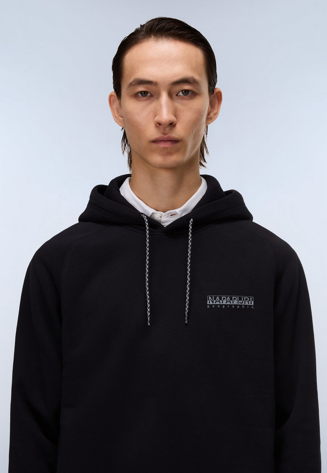 Felpa Back Graphic con vestibilità rilassata, cappuccio regolabile con coulisse, occhielli ricamati, dettagli stampati, grafiche stagionali Napapijri frontali e posteriori, composizione 90% cotone, 10% poliestere. Stirare a freddo, asciugare in asciugatrice a bassa temperatura, lavare in lavatrice in acqua fredda, ciclo delicato. Codice prodotto NP0A88SR941 A25
