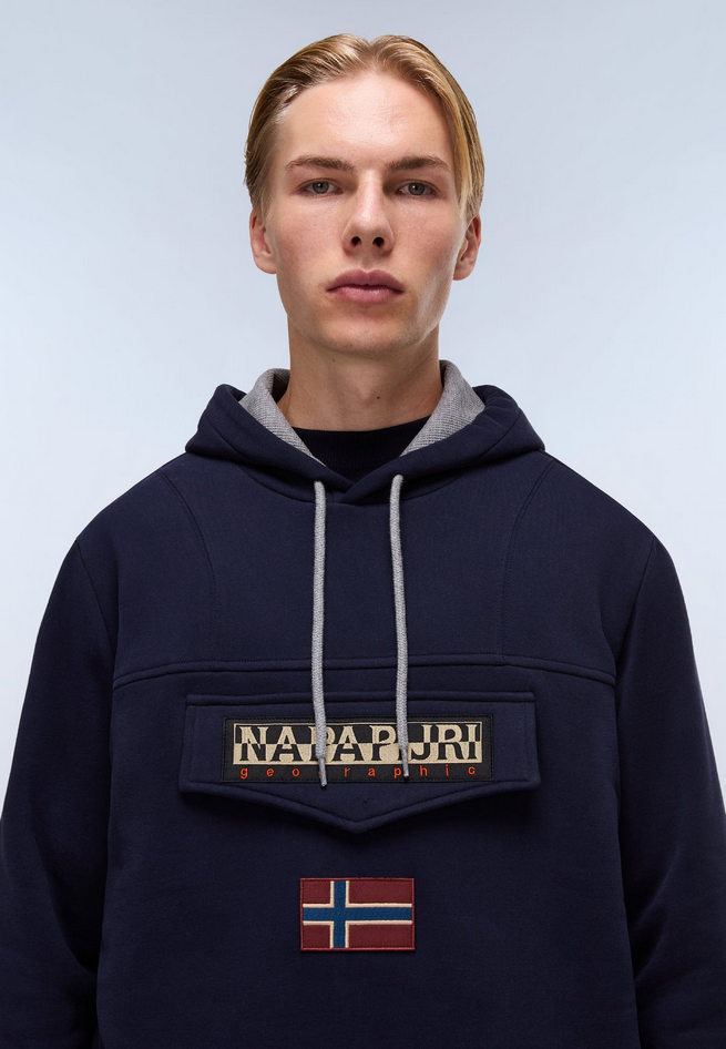 Il maglione Mura è un capo caldo e confortevole, ispirato all'estetica alpina, realizzato in 100% cotone, caratterizzato da una bandiera norvegese lavorata a intarsio, con girocollo classico e finiture a costine su polsi, collo e orlo, maglia a intarsio, dettagli ricamati, composizione 100% cotone, non asciugare in asciugatrice, non lavare a secco, stirare a freddo secondo le esigenze, non candeggiare, lavare in lavatrice in acqua fredda ciclo delicato. Codice prodotto NP0A891U176 A25