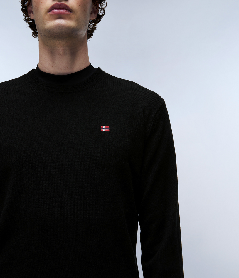 Maglione in 100% lana ideale da abbinare a strati, con girocollo, piccola bandiera norvegese sul petto e polsini con righe a contrasto. Composizione: 100% lana. Non asciugare in asciugatrice, lavare in lavatrice in acqua fredda con ciclo delicato, stirare a freddo se necessario. Codice prodotto NP0A4GJU041 A25