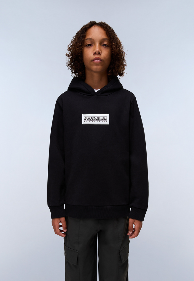 Felpa da bambino Chamois in 80% cotone, 20% poliestere, con cappuccio fisso, maniche lunghe e stampa Napapijri Geographic sul petto. Dettagli stampati. Non asciugare in asciugatrice, lavare in lavatrice in acqua fredda, stirare a caldo. Codice prodotto NP0A4HY4041 A25
