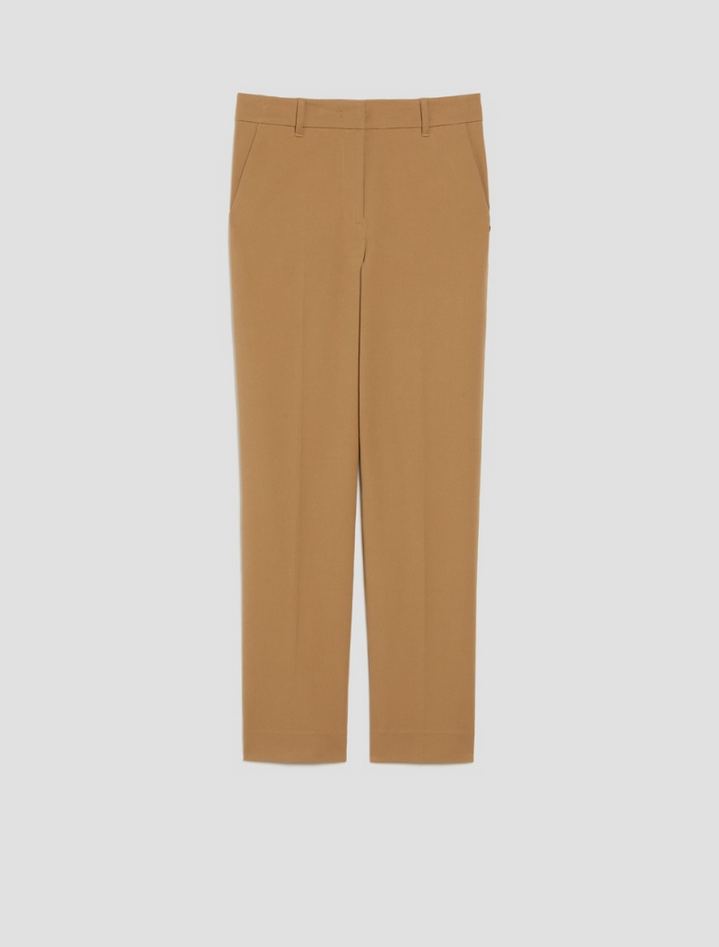 Raffinati nella linea e impeccabili nella vestibilità, i pantaloni slim sartoriali in twill di cotone e viscosa bi-stretch rappresentano un alleato versatile per costruire look sempre eleganti e contemporanei. Il taglio slim con linee affusolate al fondo valorizza la silhouette, mentre la vita regolare con passanti e la piega stirata sottolineano l'ispirazione tailoring. Le tasche alla francese sul davanti e a filo sul retro aggiungono un tocco di funzionalità discreta, completato dalla chiusura nascosta con gancio e zip per un finish pulito. Composizione: 53% cotone, 41% viscosa, 6% elastan. Lavaggio: in lavatrice max 30° a ridotta azione meccanica; non candeggiare; non asciugare in tamburo; asciugare appeso in ombra; ferro tiepido max 120°C; lavare a secco con percloroetilene. Codice prodotto PENNYNY 2521136023200002 A25
