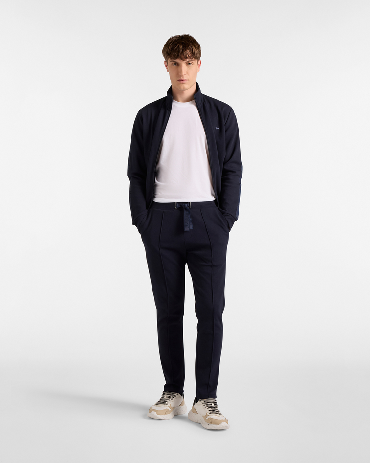 Capo imprescindibile per chi ama uno stile sportivo ma curato nei dettagli, questi pantaloni da uomo firmati Harmont & Blaine combinano comfort e ricercatezza in un design moderno e versatile. Realizzati in felpa di misto cotone stretch con trama diagonale, assicurano una piacevole sensazione di morbidezza sulla pelle e un'ottima libertà di movimento. La vestibilità regular li rende ideali per accompagnare le attività quotidiane, mentre i dettagli sartoriali ne elevano il carattere: due pratiche tasche laterali, due eleganti tasche posteriori a filetto, una sottile nervatura frontale che slancia la figura e una vita regolabile con coulisse in fettuccia logata per un tocco distintivo. Sul retro, l'iconico bassotto ricamato aggiunge la firma inconfondibile del brand. Perfetti da indossare da soli o in coordinato con la felpa abbinata per un total look sporty-chic. Cura e Manutenzione: 60% Cotone, 38% Poliestere, 2% Elastan, programma 30° lavaggio normale, non candeggiare, non centrifugare, stiratura a bassa temperatura, non lavare a secco. Codice prodotto FRP214021756801 A25