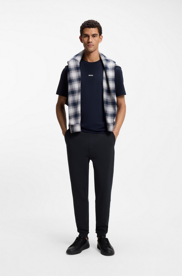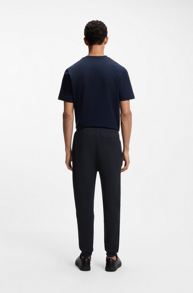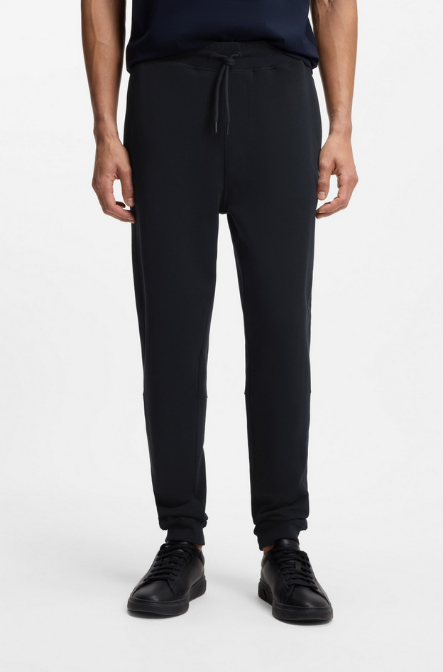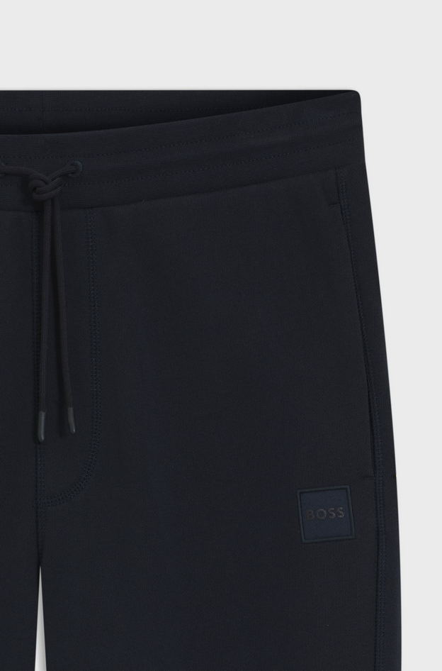 Realizzati in morbido cotone french terry, questi pantaloni della tuta BOSS Uomo sono proposti in una vestibilità casual regular fit con linea dritta e fondo gamba con coulisse, rifiniti da patch logo tono su tono. Composizione 100% cotone, fodera interna 100% cotone, dettagli 97% cotone e 3% elastan. Lavare a 30 °C con ciclo facile da trattare, non candeggiare, non centrifugare, stirare a bassa temperatura, non lavare a secco. Codice prodotto Sestart 10234591 02404 A25