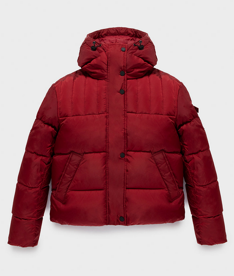 Natalia Jacket, piumino corto da donna in nylon coreano effetto satinato con tecnologia downproof, water resistant e windproof, fit slim cropped con cappuccio integrato antipioggia, trapuntatura differenziata verticale sul busto e orizzontale sul fondo, chiusura con zip frontale e tasche con zip, imbottitura 100% piuma 90-10 certificata RDS per calore e leggerezza. Composizione: esterno 100% nylon, fodera 100% nylon, imbottitura 100% piuma 90-10 RDS. Codice prodotto NY0145 W72200C01534 A25