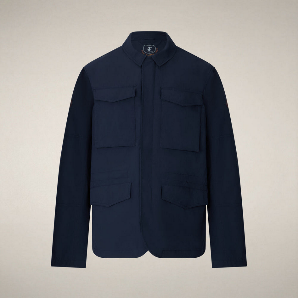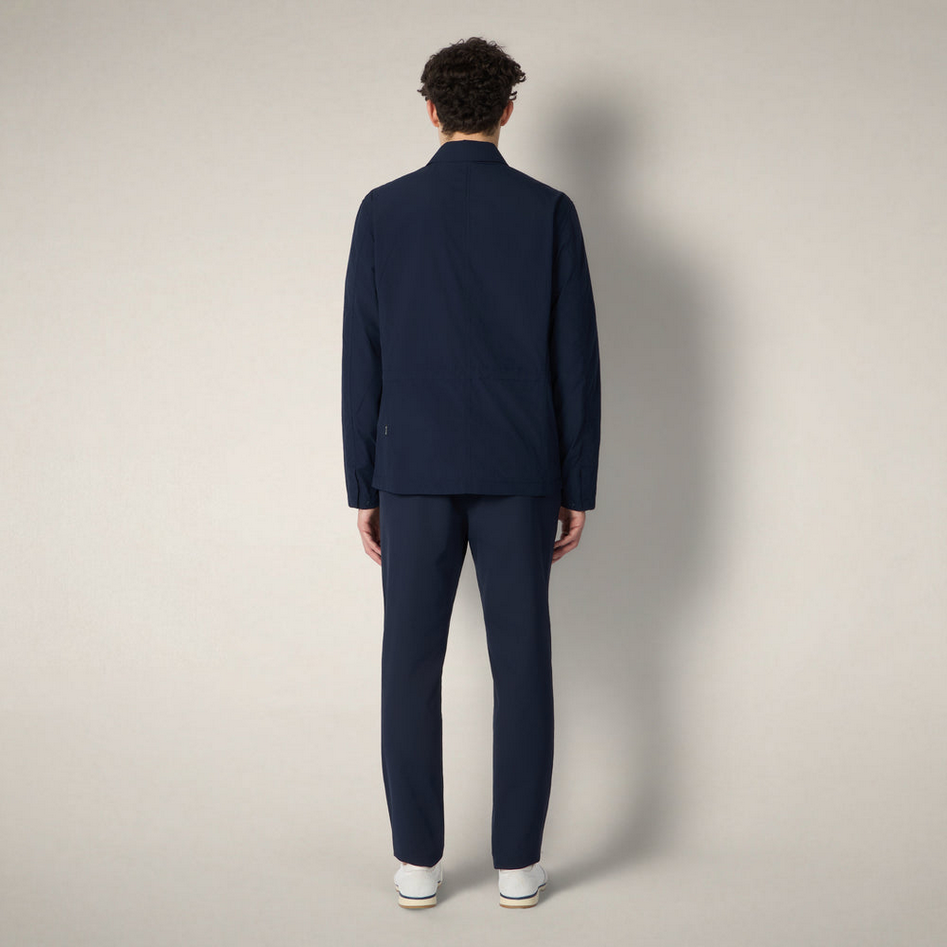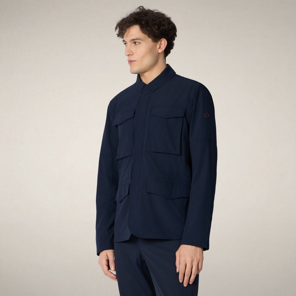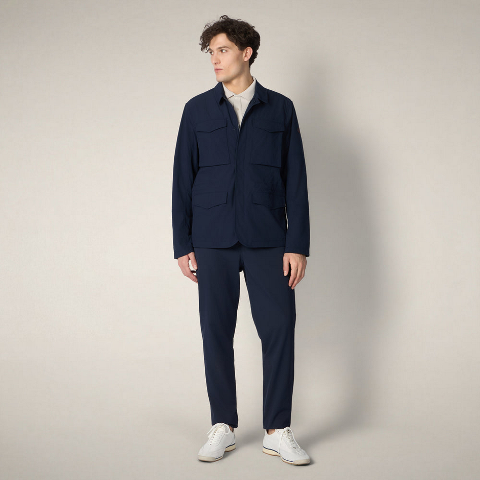 La giacca leggera Jago rivisita la sahariana in chiave estiva, utilizzando un tessuto ultrasottile in poliestere (64% riciclato) dall'effetto opaco, stropicciato e dalla mano cotoniera. Il design funzionale presenta un colletto a punta, quattro tasche con patta, chiusura con zip e bottoni a pressione, completato da una coulisse regolabile in vita per personalizzare il fit. Ideale per un uso cittadino, combina sostenibilità e versatilità grazie alla struttura leggera pensata per la stratificazione estiva. Codice prodotto D32131M-POBY2290000 P26