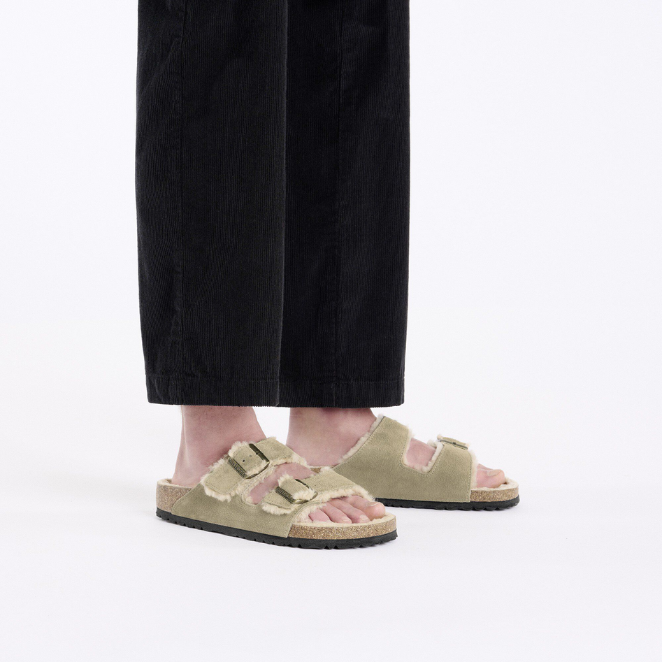 Il classico BIRKENSTOCK Arizona si presenta in una versione particolarmente morbida e accogliente, realizzata in pregiata pelle scamosciata con fodera in pelliccia naturale di agnello. Il sottopiede e l'interno dei cinturini, anch'essi rivestiti in pelliccia, garantiscono una sensazione di calore avvolgente, rendendo questo modello ideale per le serate invernali trascorse al caldo. Plantare anatomico in sughero e lattice, suola in EVA, cinturini regolabili, Made in Germany. La pelle scamosciata è morbida, piacevole al tatto e assorbe bene l'umidità, con una naturale flessibilità che può variare da pelle a pelle. La pelliccia di agnello offre comfort termico e traspirabilità, mentre il sughero del plantare assicura isolamento e proprietà ammortizzanti. La suola in EVA è leggera, elastica e ammortizzante, capace di compensare piccole irregolarità del terreno e rendere ogni passo più morbido. Codice prodotto 1028293TAUPE A25