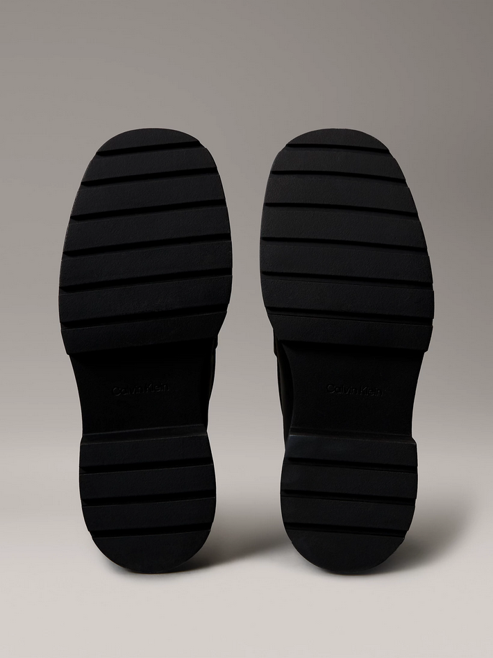 Sicura e moderna: una collezione di modelli in pelle spessa e pelle scamosciata realizzati con una suola robusta ma leggera che offre un'aderenza e un comfort eccezionali, rifinite con una soletta imbottita Airfit® che assorbe gli urti e riduce l'affaticamento, per indossarle comodamente tutto il giorno. Highlight: tomaia in pelle liscia, soletta imbottita Airfit®, fodera in pelle, suola con tacchetti in TPR resistente e leggera, cucitura a grembiule, elementi metallici con logo Calvin Klein di forma organica sul cinturino. Forma e vestibilità: punta quadrata, altezza tacco: 5 cm. Paese di origine: Cina. Codice prodotto YW0YW01912BEH A25