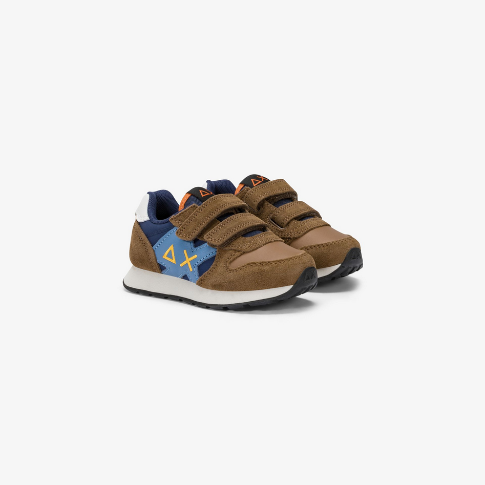 La sneaker Jaki 2.0 Bicolor porta il carattere dinamico di SUN68 nello stile dei più piccoli. Realizzata in suede e nylon con dettagli in similpelle, si distingue per la patch laterale con logo ricamato a contrasto e per la chiusura pratica con cinturini a strappo. La fodera in micro mesh assicura traspirabilità, mentre la suola in EVA fresata a mano garantisce leggerezza e comfort in ogni passo. Composizione: 62% pelle, 23% residui tessili o composizione non determinata, 15% poliuretanica. Codice prodotto Z45314B93 A25
