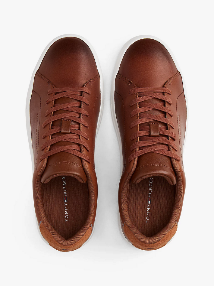 Le sneakers sportive in pelle saranno le tue calzature preferite per i look di ogni giorno, grazie al design essenziale e ai dettagli ricercati. Caratteristiche principali: esterno in pelle, interno in poliestere, soletta rimovibile in poliuretano, gomma termoplastica e altri materiali, suola in gomma, sezione a contrasto sul retro, logo Tommy Hilfiger impresso sulla linguetta e sull'esterno, branding Tommy Hilfiger, bandierina Tommy Hilfiger gommata sul retro. Modello e vestibilità: modello basso, stringate, punta tonda. Composizione e cura: 100% pelle. Codice prodotto FM0FM05729GVI A25