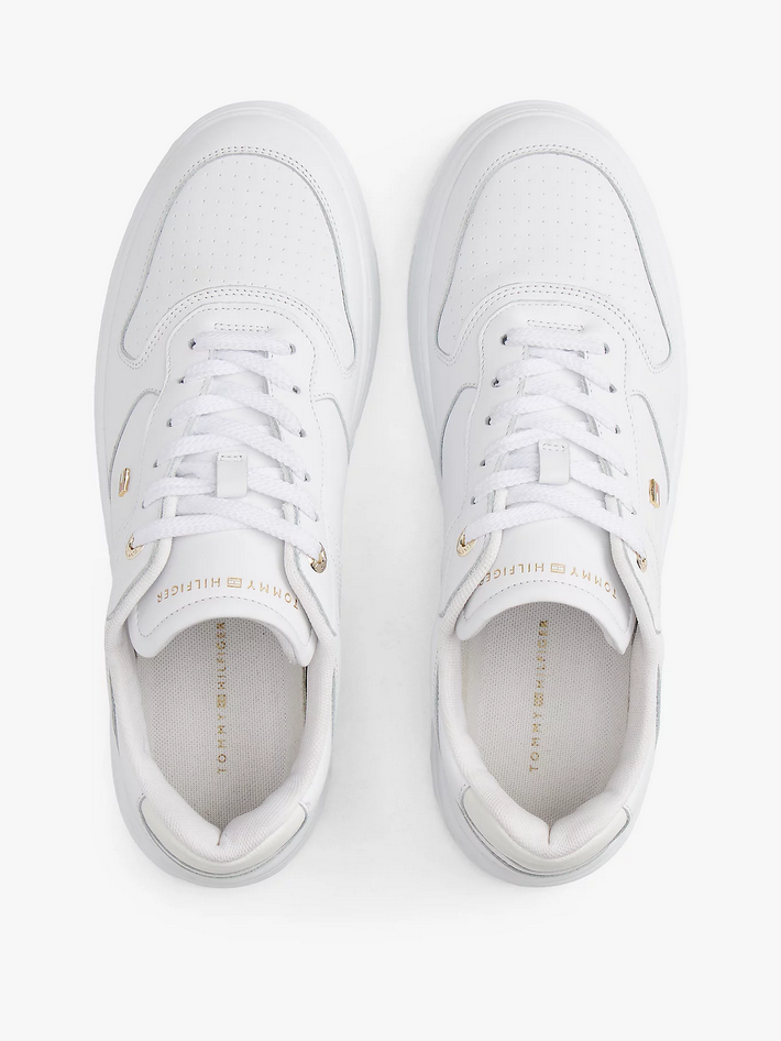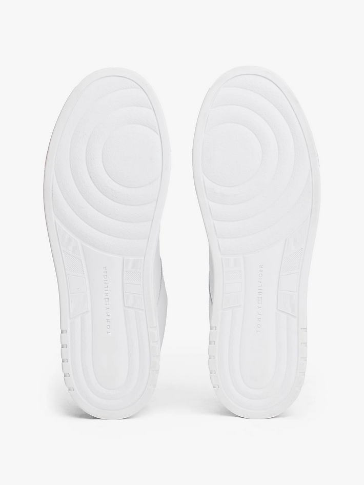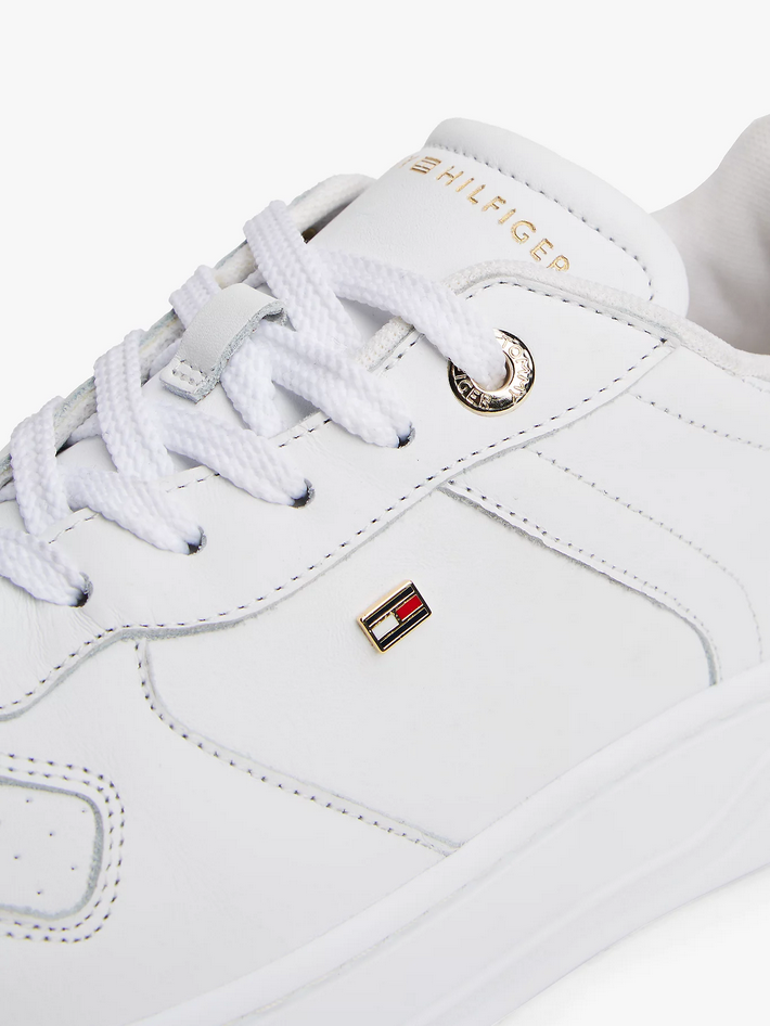 Le sneakers basse dal design affusolato, con suola preformata e sezioni con mix di texture, rivisitano le classiche scarpe stile basket in chiave femminile. Caratteristiche principali: esterno in pelle, interno in poliestere, soletta rimovibile in poliuretano, suola in gomma termoplastica, sezioni con mix di texture, dettagli per la ventilazione sull'esterno, logo Tommy Hilfiger metallizzato impresso sulla linguetta, branding Tommy Hilfiger, bandierina Tommy Hilfiger smaltata sul lato. Modello e vestibilità: modello basso, stringate, punta tonda, altezza suola: 3,3 cm. Composizione e cura: 100% pelle. Codice prodotto FW0FW08795YBS A25
