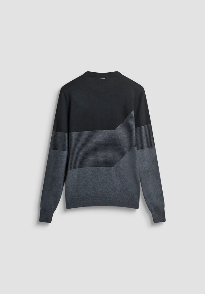 Maglia girocollo dalla vestibilità regular, realizzata in morbido filato misto lana Merino. Il design color block geometrico dona al capo un aspetto moderno e sofisticato, perfetto per chi ama uno stile contemporaneo senza rinunciare al comfort. Girocollo, fondo e polsini a costine. Piccola placchetta metallica logata cucita sul retro. Composizione: 42% Poliestere, 25% Acrilico, 22% Poliammide, 11% Lana Merino. Lavaggio in lavatrice a 30°, non candeggiare, asciugare in piano, stirare max a 110°, non lavare a secco. Codice prodotto MMSW01563-YA4011419000 A25