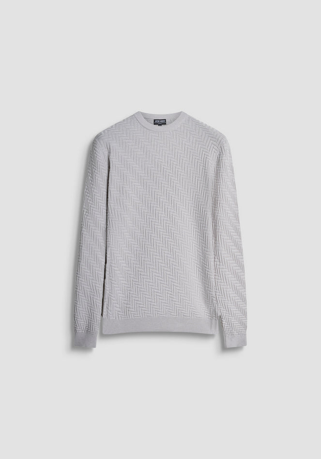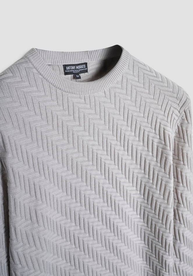 Maglione girocollo regular fit realizzato in morbida lana con sofisticato motivo jacquard tridimensionale a spina di pesce, che dona un elegante effetto texture. Girocollo, polsini e orlo rifiniti a costine. Un capo versatile che si adatta a diverse occasioni, dal casual quotidiano agli impegni del weekend, rappresentando una scelta perfetta per un guardaroba contemporaneo e senza tempo. Composizione: 40% poliestere, 29% acrilico, 25% poliammide, 6% lana merino. Lavaggio in lavatrice a 30°, non candeggiare, asciugare in piano, stirare max a 110°, non lavare a secco. Codice prodotto MMSW01533-YA5000881013 A25